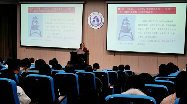 12月10日下午,文化与传播学院与机电工程学院在文端楼一楼报告厅联合举办学习贯彻党的二十届四中全会精神专题宣讲会。马克思主义学院孙海霞教授应邀主讲,两学院师生代表两百余人参加学习。
