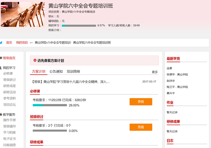 近期,我校启动“学习贯彻十八届六中全会精神,深入推进全面从严治党”专题网络培训班。培训为期3个月,各党总支书记、副书记,组织部、宣传部和纪委办全体人员,办公室、学工部和武装部相关人员共46人参加培训。