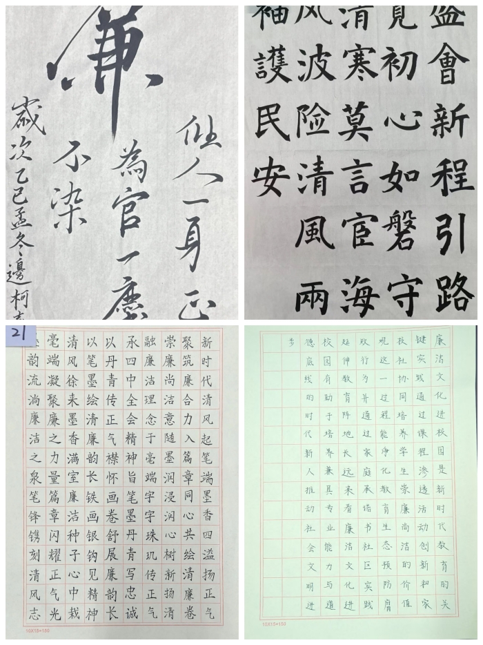 10月2日,经济管理学院开展“墨香廉韵”书法征集创作活动与“清风润色,绘梦时光”绘画征集创作活动,并于11月26日在横江校区文华楼门口举办“笔绘清风,墨守廉洁”主题书画作品展览。创作活动中,学生们将廉洁理念融入笔墨丹青,累计收集到近150幅优质作品。展览现场,一幅幅主题鲜明、意境深远的作品,生动展现了学生对崇廉尚洁的深刻理解与价值追求,引导全体师生在艺术熏陶中将廉洁理念内化于心、外化于行。