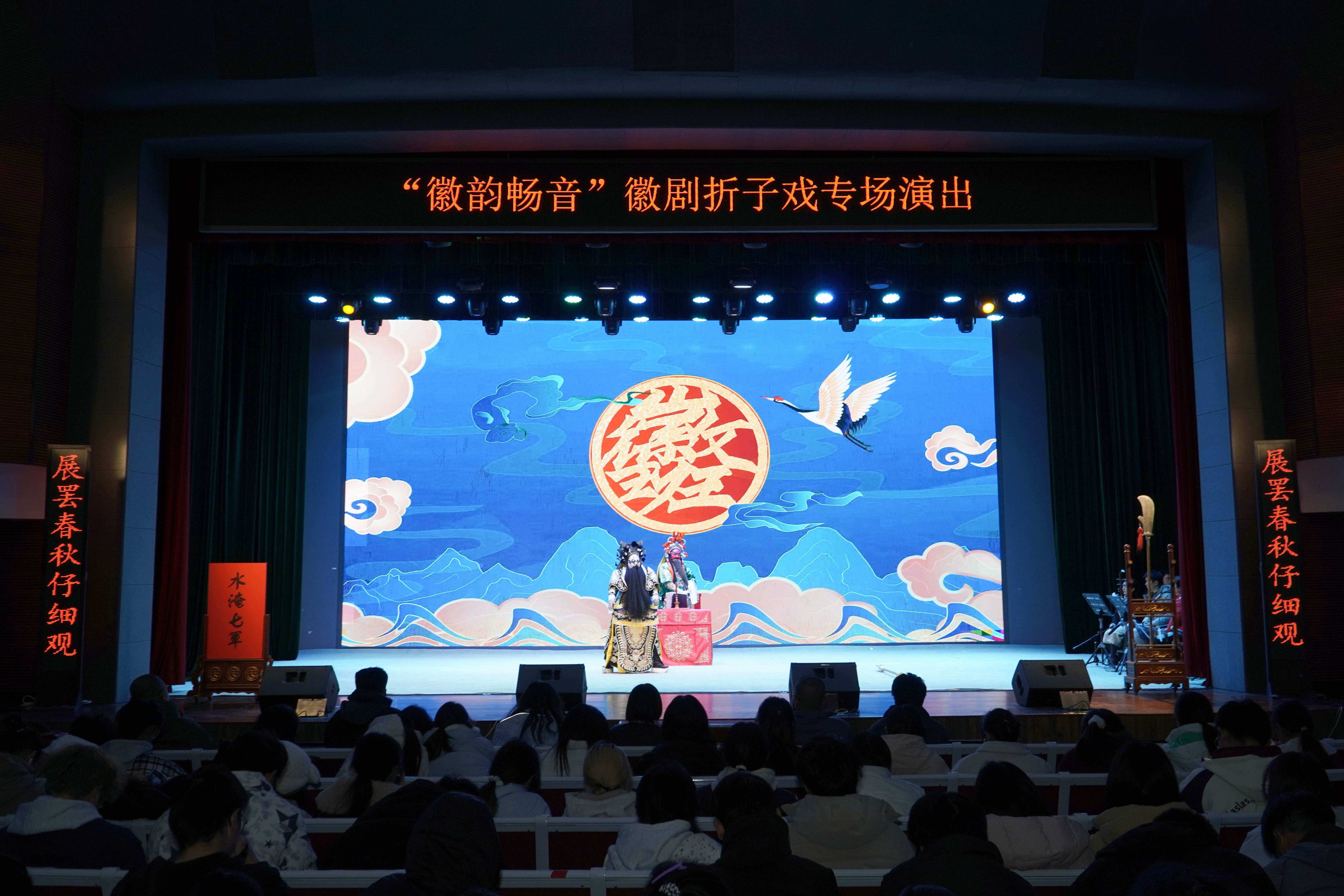 为纪念徽班进京235周年,推动非遗传承与校园文化相融合,12月15日晚,安徽省徽京剧院与我校联合举办“徽韵畅音”徽剧折子戏专场演出。活动在大学生活动中心大礼堂举行,吸引了全校学生踊跃参与,现场气氛热烈。