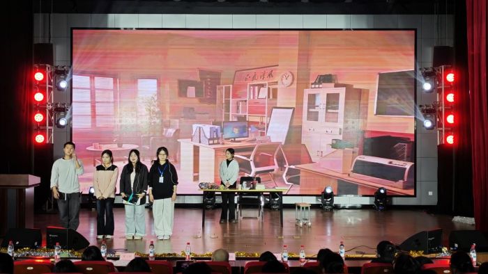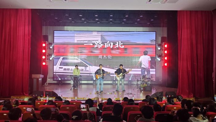 文艺表演环节精彩纷呈,节目形式丰富多样。朗诵《百年交响》,以铿锵有力的语调诉说百年征程,尽显家国情怀;模特队表演《今天你y2k了吗》则用新潮的走秀展现了学生的青春创意;《爱的回归线》、《我们俩》、《恋爱告急》、《故乡的原风景》等歌曲、舞蹈、乐器独奏轮番上演。校园乐队带来的《一路向北》演奏更是将现场氛围点燃,少年们的热血与洒脱在音符里展现得淋漓尽致;小品《再见老师》聚焦师生关系这一暖心主题,通过还原课堂互动、学业帮扶等贴近校园生活的真实情节,生动演绎出学院师生之间互敬互爱、携手共进的温馨氛围。