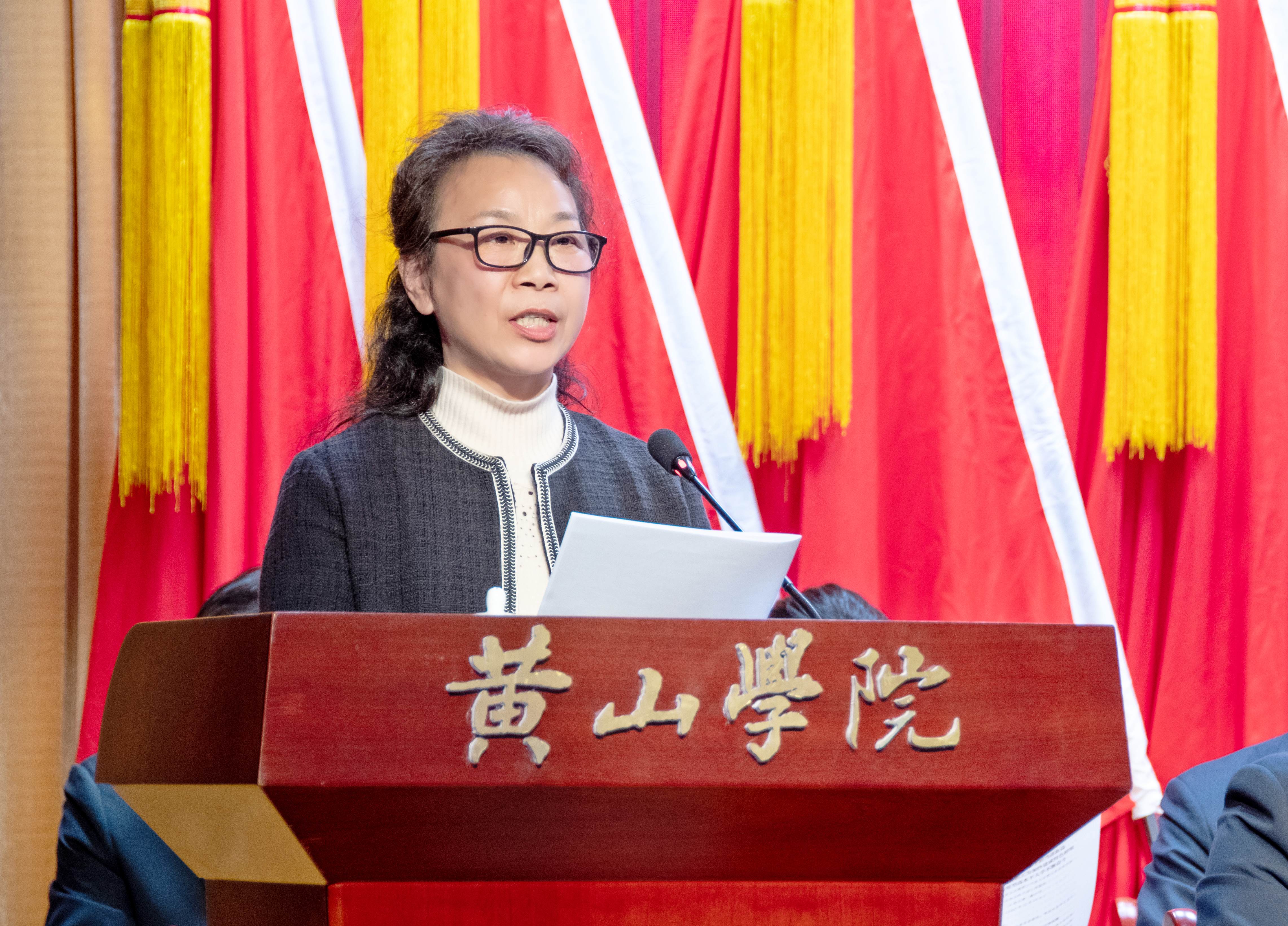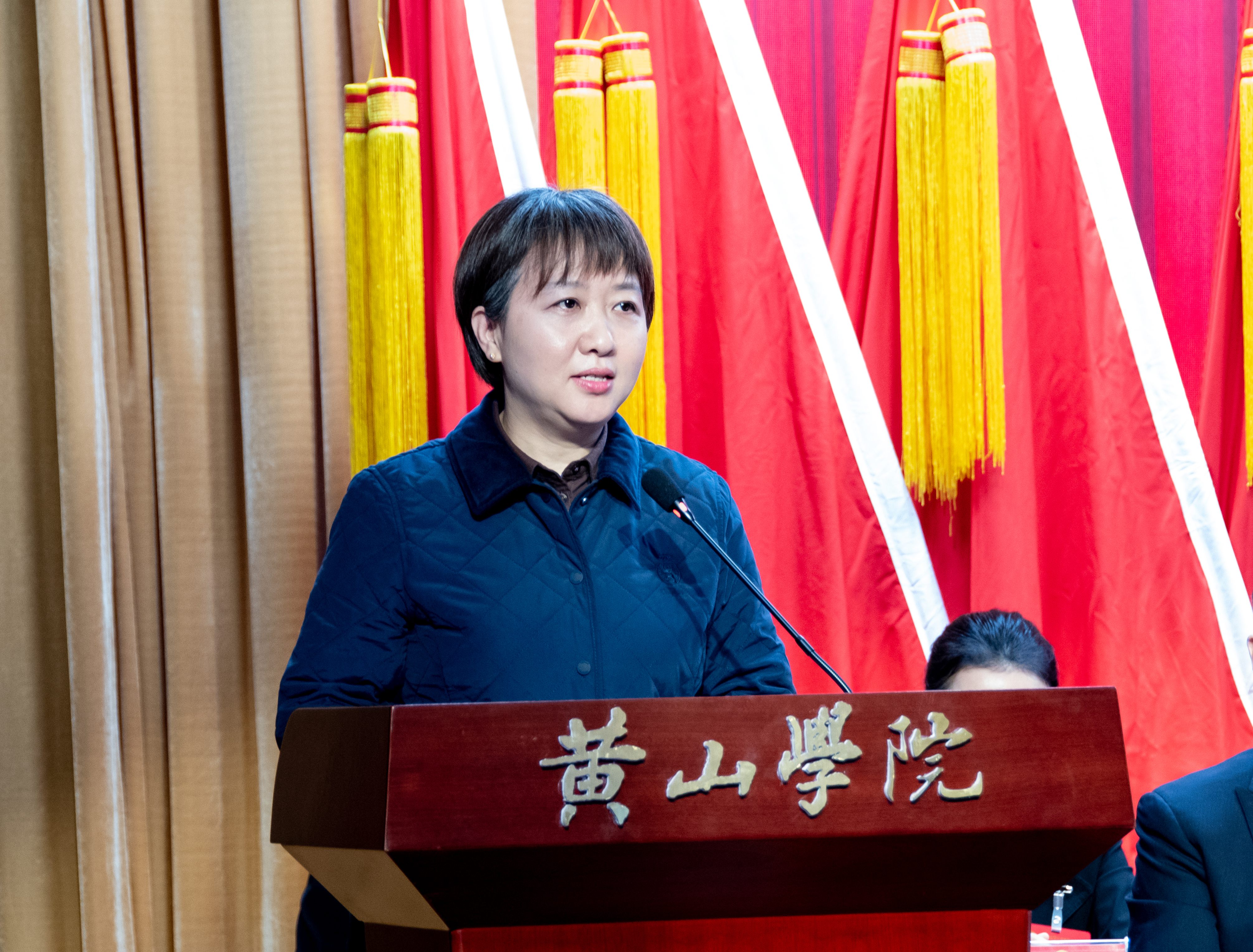 李晓燕代表安徽省教科文卫体工会向大会的召开表示祝贺,她充分肯定了学校始终锚定立德树人根本任务,在民主管理、权益维护、素质提升等方面取得的扎实成效。她表示,在黄山学院党委的坚强领导下,全校教职工和工会会员凝心聚力、奋勇争先,必将为推进教育强省建设、谱写中国式现代化安徽篇章做出更大贡献。