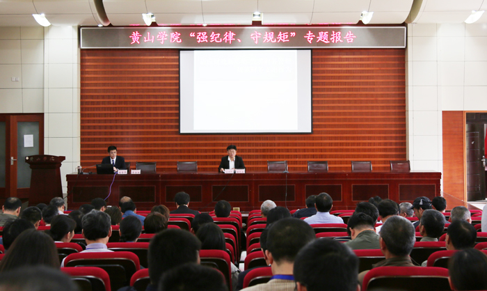 5月2日下午,我校作风建设年系列活动之“强纪律、守规矩”活动首场专题报告会在图书馆二楼报告厅举行。校财务处处长吴海澜作题为“适应财政新形势,完善财务管理,规范财务支出行为”的专题报告。报告会由纪委副书记、监察审计处处长黄先进主持,全校副科级以上干部200余人参加会议。