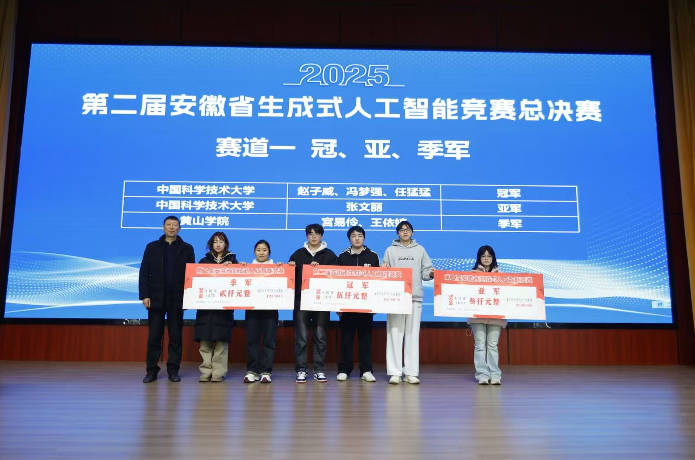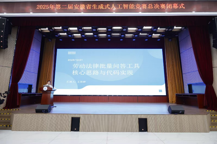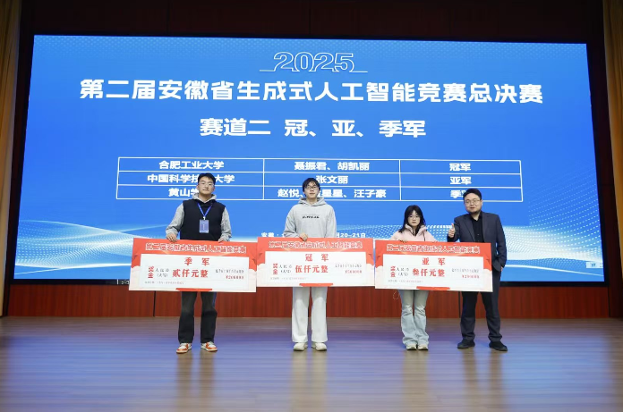 12月21日,在第二届安徽省生成式人工智能竞赛总决赛中,我校学子在法律智能体问答和基于大模型的掼蛋竞赛两个赛道中表现突出,共获本科组一等奖2项、二等奖2项、三等奖3项及优秀奖2项。其中,两个本科生组一等奖,分别在每个赛道的研究生组、本科生组和高职高专组的合并评比中,获得季军。沈来信老师荣获优秀指导教师称号。