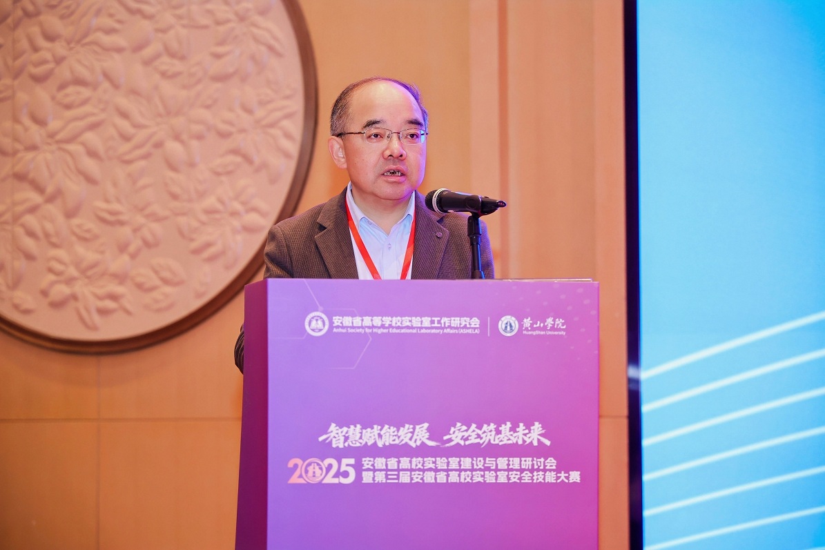 张小明介绍了学校基本情况,并作了题为《筑牢安全基石,赋能创新育人——黄山学院实验室安全与管理的实践与思考》的报告。他表示,本次研讨会与技能大赛聚焦实验室建设与管理核心议题,以赛促学、以研促建,对提升高校实验室安全建设水平与管理效能具有深远意义。
