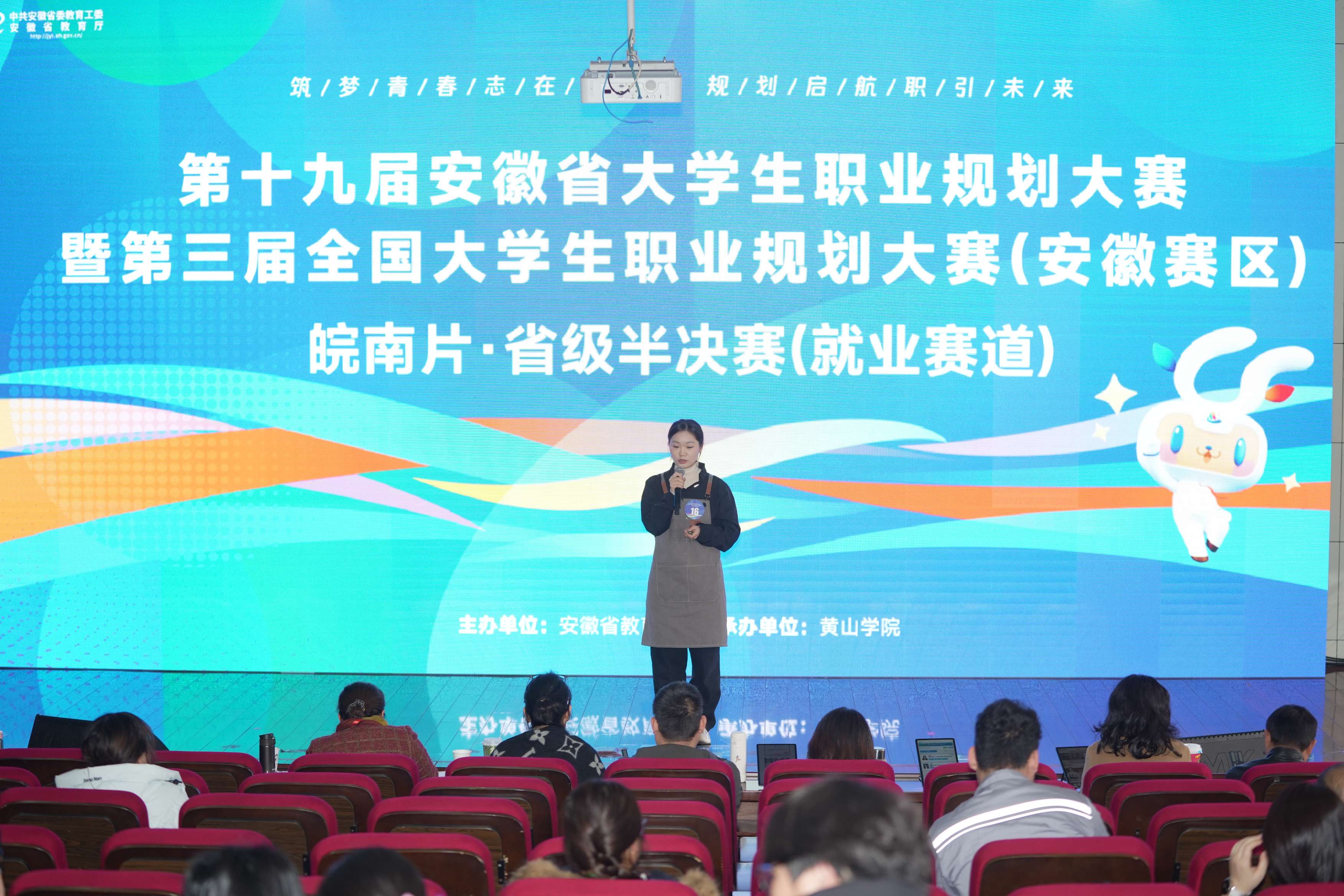 12月19日-20日,由安徽省教育厅主办、我校承办的第十九届安徽省大学生职业规划大赛皖南片省级半决赛(高教组、职教组)在我校率水校区举办。经过各院校层层选拔,来自皖南地区36所本专科院校共计113位参赛选手进入皖南片省级半决赛,省内外高校相关专家企业受邀担任评委。校党委副书记刘力、安徽省大中专毕业生就业指导中心主任张秋田深入赛场指导。