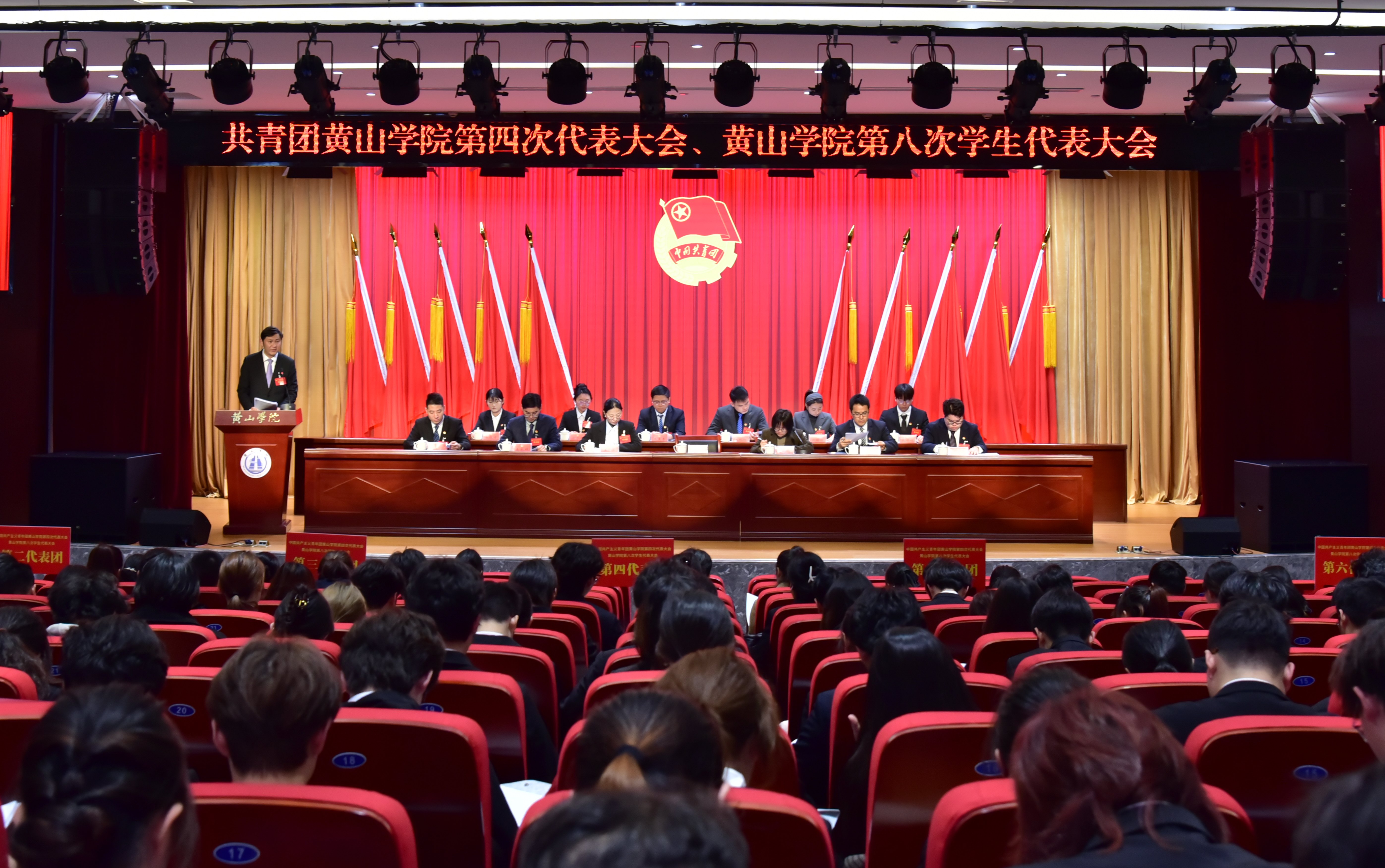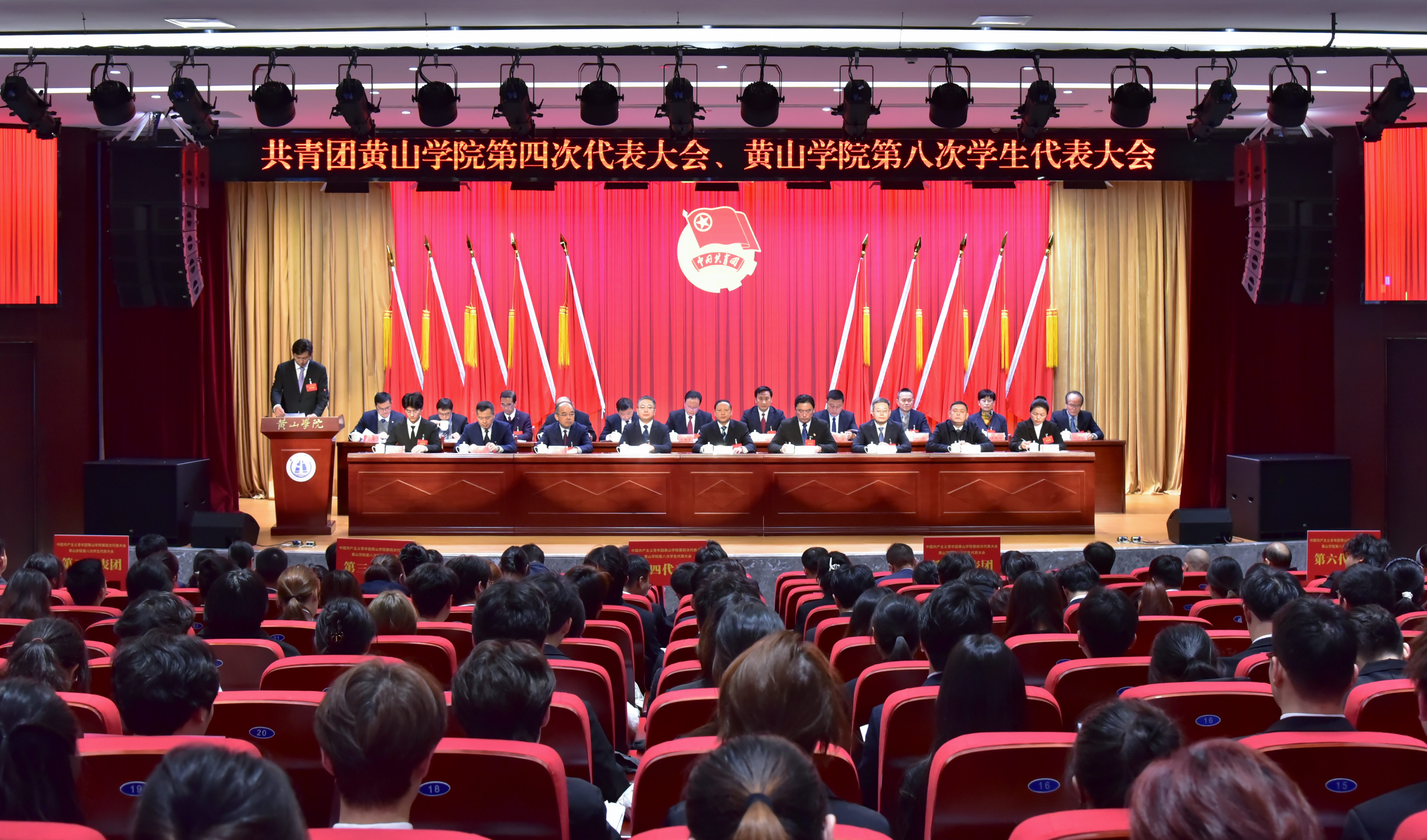 12月27日,共青团黄山学院第四次代表大会暨黄山学院第八次学生代表大会胜利召开。共青团安徽省委副书记周宇、共青团安徽省委学校部二级调研员汪文斌、共青团黄山市委书记孙洁、安徽省学联驻会执行主席洪坤应邀出席大会。校领导李铁范、李庆宏、刘力、张小明、胡海生及主席团成员出席大会并在主席台就座。校团委书记汪洋主持大会。