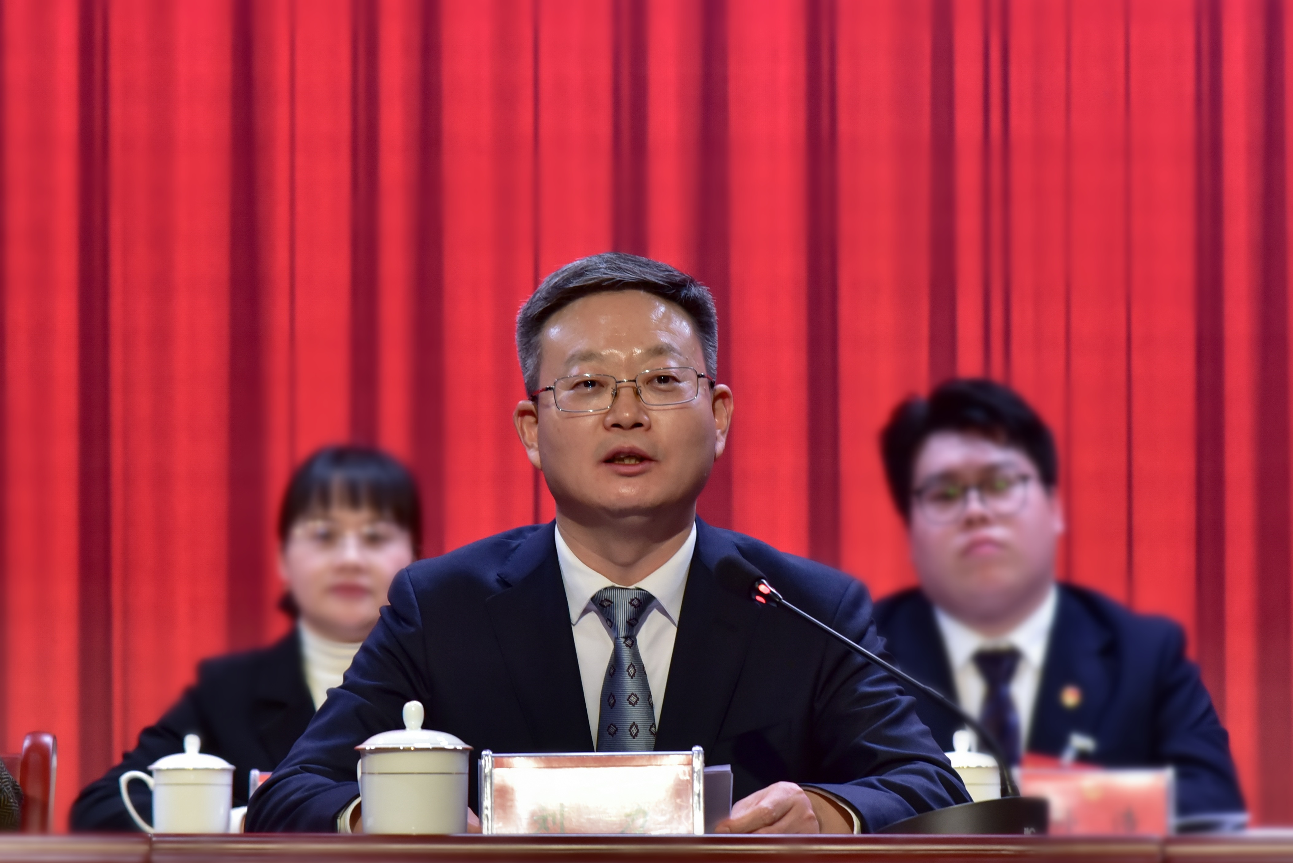 校党委书记李铁范代表学校党委致贺词,向大会召开表示祝贺,向各位领导、全体代表及广大团员青年致以问候与感谢。李铁范充分肯定了过去五年校团委、学生会的工作成效,指出学校共青团斩获“挑战杯”国赛特等奖等多项荣誉,涌现出一批国家级、省级先进典型,彰显了团组织的责任担当与青年学生的优良风貌。李铁范结合学校“申硕、升大、创一流”的发展愿景,对学校共青团、团学干部和广大团员青年提四点希望和要求:希望广大团员青年立鸿鹄之志,做奋进先锋,在逐梦征程中绽放青春光彩;怀赤子之心,做实干表率,在履职尽责中引领青年前行;筑坚强堡垒,汇青年智慧,在凝心聚力中凝聚青春动能;架连心之桥,暖青年之心,在保驾护航中助力青春远航。他希望青年朋友们,以此次团代会和学代会为新起点,以“时不我待,只争朝夕”的紧迫感,以“功成不必在我,功成必定有我”的担当精神,与时代同频共振,与学校携手共进,为加快建成特色鲜明的地方应用型高水平大学贡献青春智慧和磅礴力量。