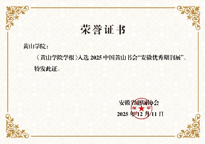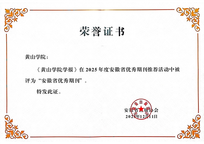 在安徽省出版协会组织的2025年度安徽省优秀期刊推荐活动中,《黄山学院学报》凭借正确的办刊方向、鲜明的学术特色、严谨的学术质量、规范的编辑出版和良好的社会效益,被评为“安徽省优秀期刊”。