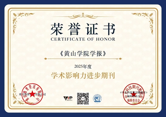 在重庆维普资讯公司与中文科技期刊数据库编辑委员会联合发布的年度报告中,《黄山学院学报》被誉为2025年度“学术影响力进步期刊”。