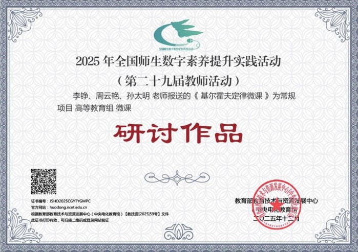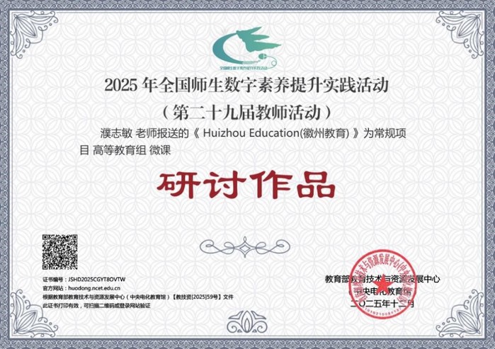 近日,2025年全国师生数字素养提升实践活动(第二十九届教师活动)评选结果揭晓,我校2件微课作品入选常规项目高等教育组微课研讨作品名单。