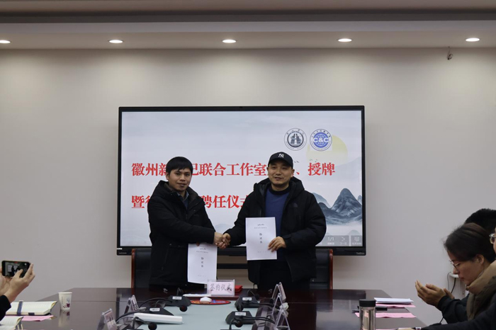 仪式上,吕正兵与李安代表校企双方签署合作协议,双方本着相互协作、各施所长、互补所需、共同发展的意愿,对外挂牌成立“徽州新印记联合工作室”。王泽梁为工作室授牌,郑静分别为戴本祠、唐友明颁发行业导师聘书,为工作室建设与人才培养注入行业力量。