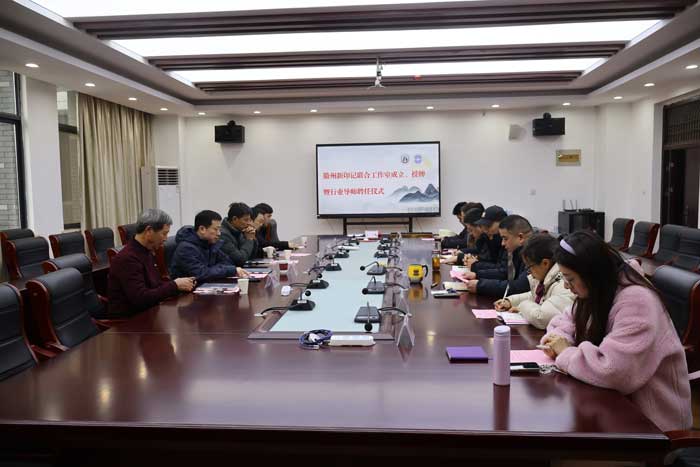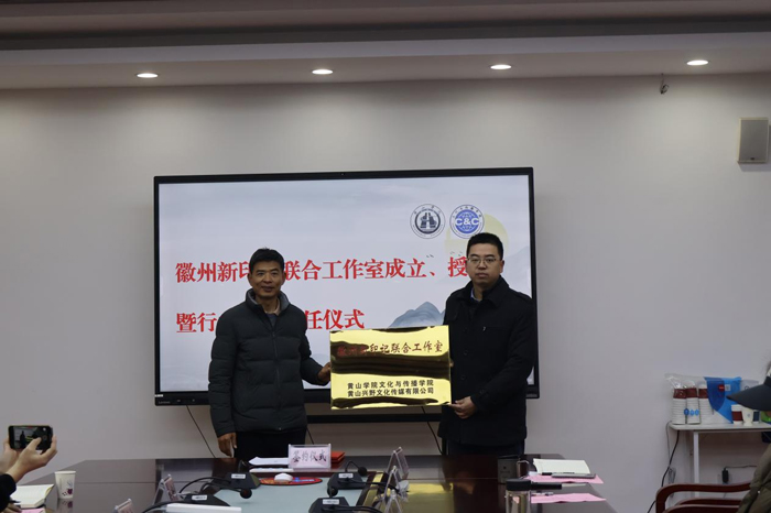 1月5日上午,文化与传播学院在文澜楼320会议室举行徽州新印记联合工作室成立、授牌暨行业导师聘任仪式。安徽广播电视台原《周末断案》制片人、黄山兴野文化传媒有限公司顾问、主任编辑戴本祠,安徽广播电视台内容电商事业部业务指导、主任记者唐友明,黄山兴野文化传媒有限公司董事长李安,黄山亚文文化传媒公司董事长汪建文,祁门县文旅局退休干部叶贤贵,黄山学院文化与传播学院党委副书记(主持工作)王泽梁、院长吕正兵、党委副书记郑静、戏文教研室主任冯韵、播音与主持艺术教研室主任方婷婷、广编教研室主任黄天书等出席活动。仪式由文化与传播学院副院长刘罗玉主持。