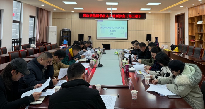 1月4日,由教务处主办、外国语学院承办的“跨界・融合・创新——黄山学院跨学科人才培养沙龙”在逸夫综合楼5402会议室举行。教务处、国际交流合作处、教育科学学院、旅游学院、经济管理学院、艺术学院、信息工程学院、机电工程学院、文化与传播学院、艺术学院等相关学院负责人,以及外国语学院党政领导班子、各教研室主任与骨干教师代表齐聚一堂,共商外语人才培养提质增效之道。沙龙由外国语学院院长洪常春主持。