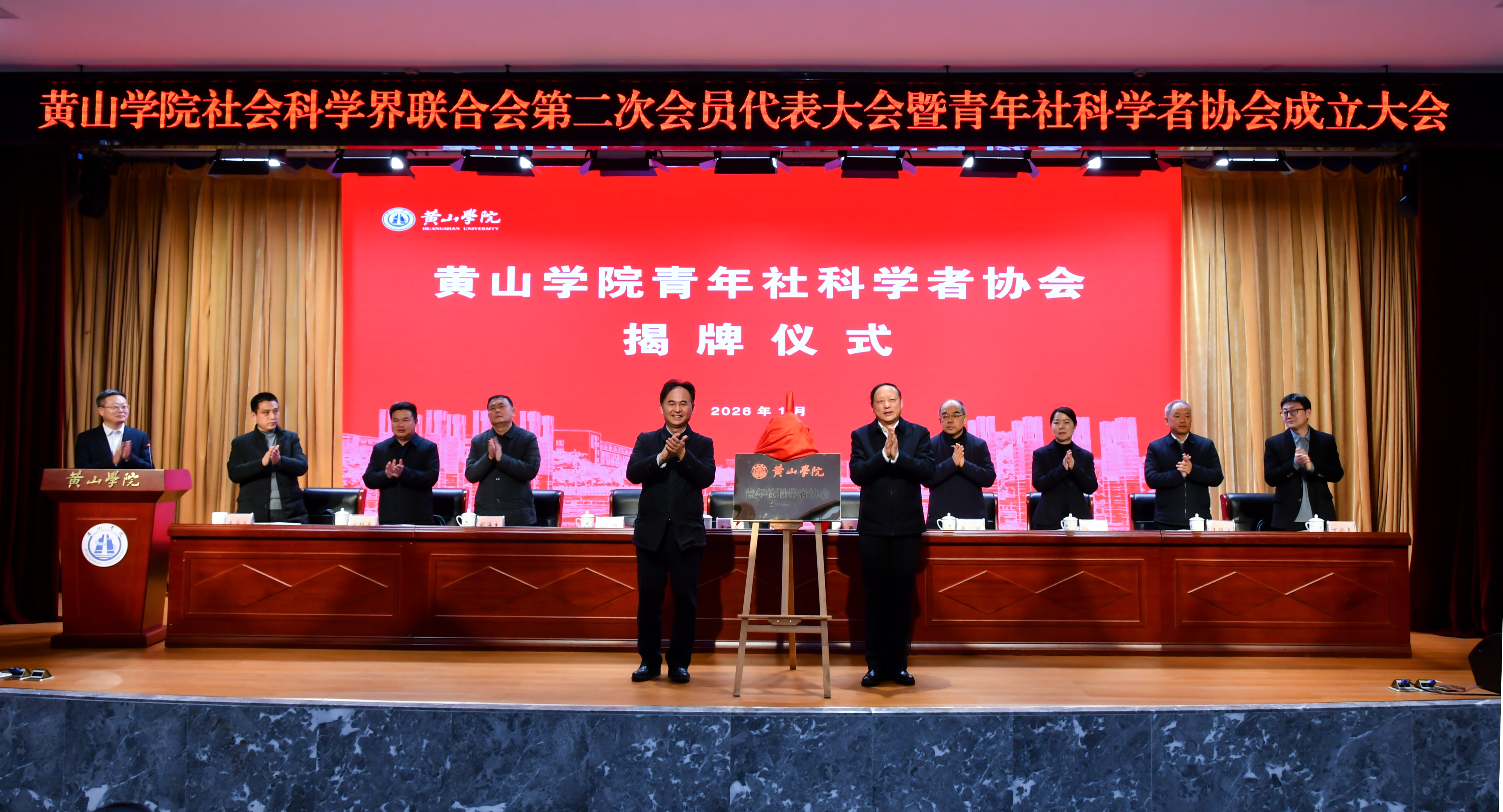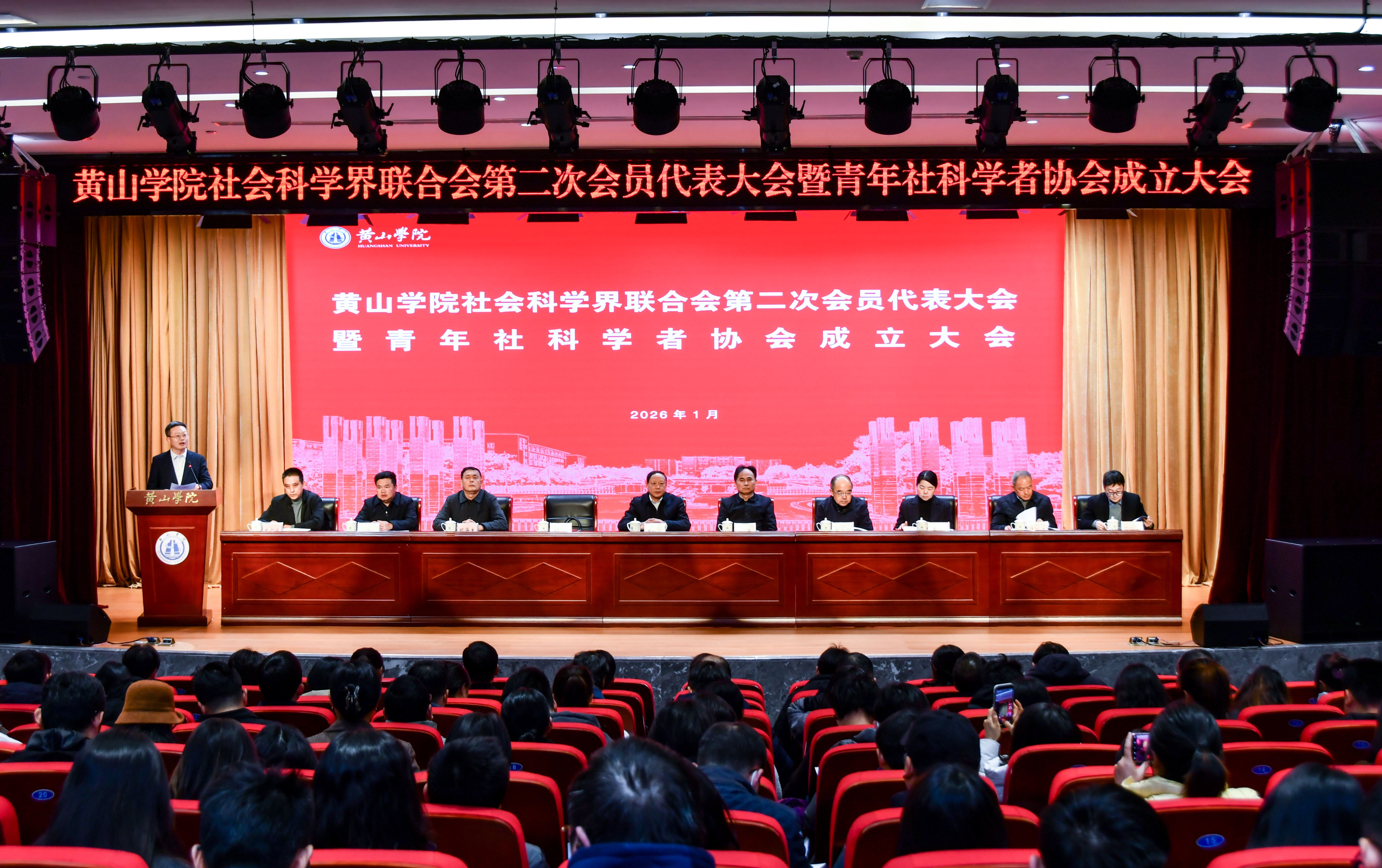 1月12日,黄山学院社会科学界联合会第二次会员代表大会暨青年社科学者协会成立大会在率水校区文博楼二楼报告厅召开。安徽省社科联党组成员、副主席林勇,黄山市社科联党组书记、主席汪明洁,安徽省社科联办公室主任黄中远,安徽省社科界青年学者协会副会长、安徽师范大学历史学院副院长丁修真教授,校领导李铁范、刘力、张小明、胡海生、姜红、方辉平出席会议,191位社科联会员代表、青年社科学者协会会员代表共同参会。校党委副书记刘力主持开幕式,副院长姜红主持相关阶段会议。