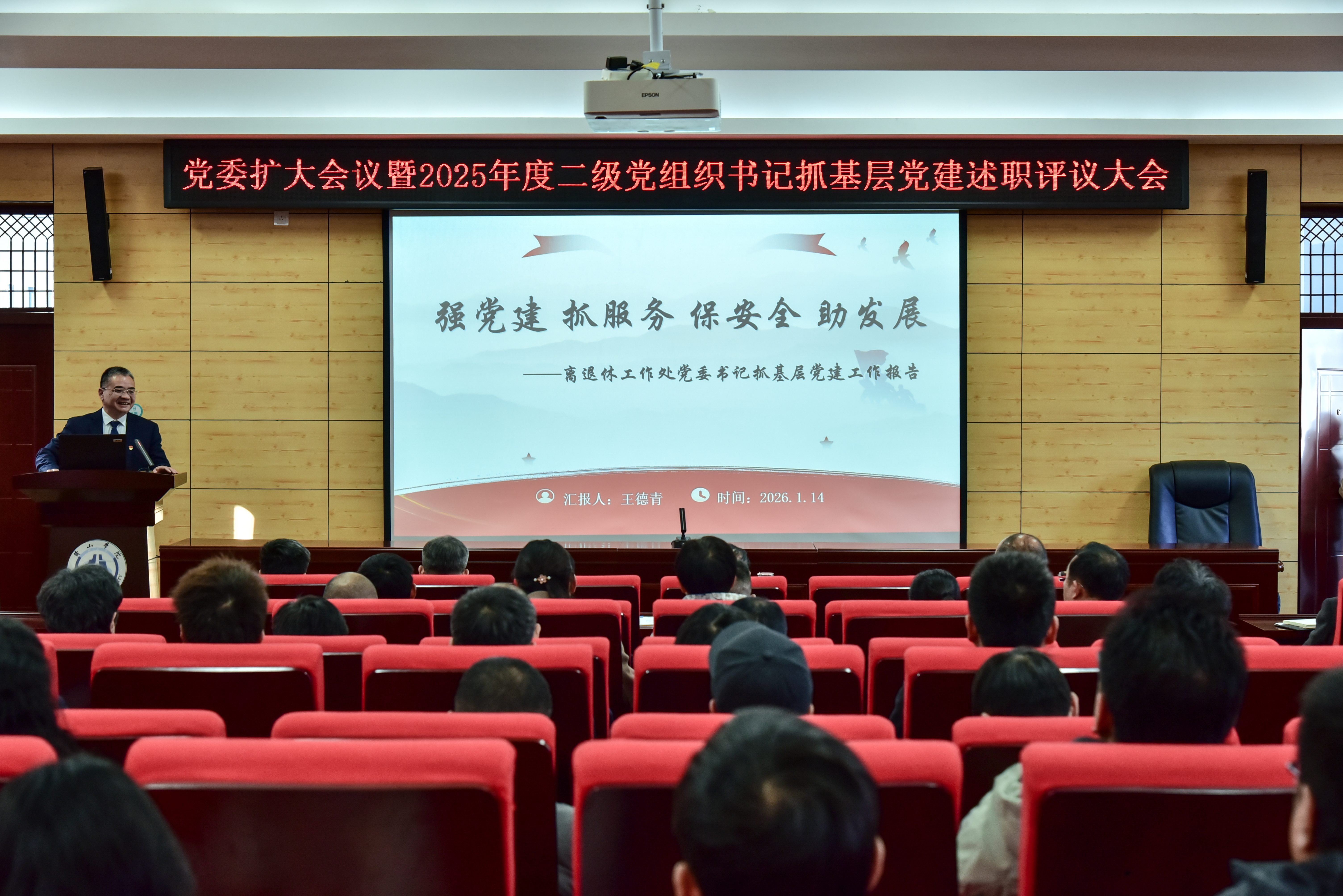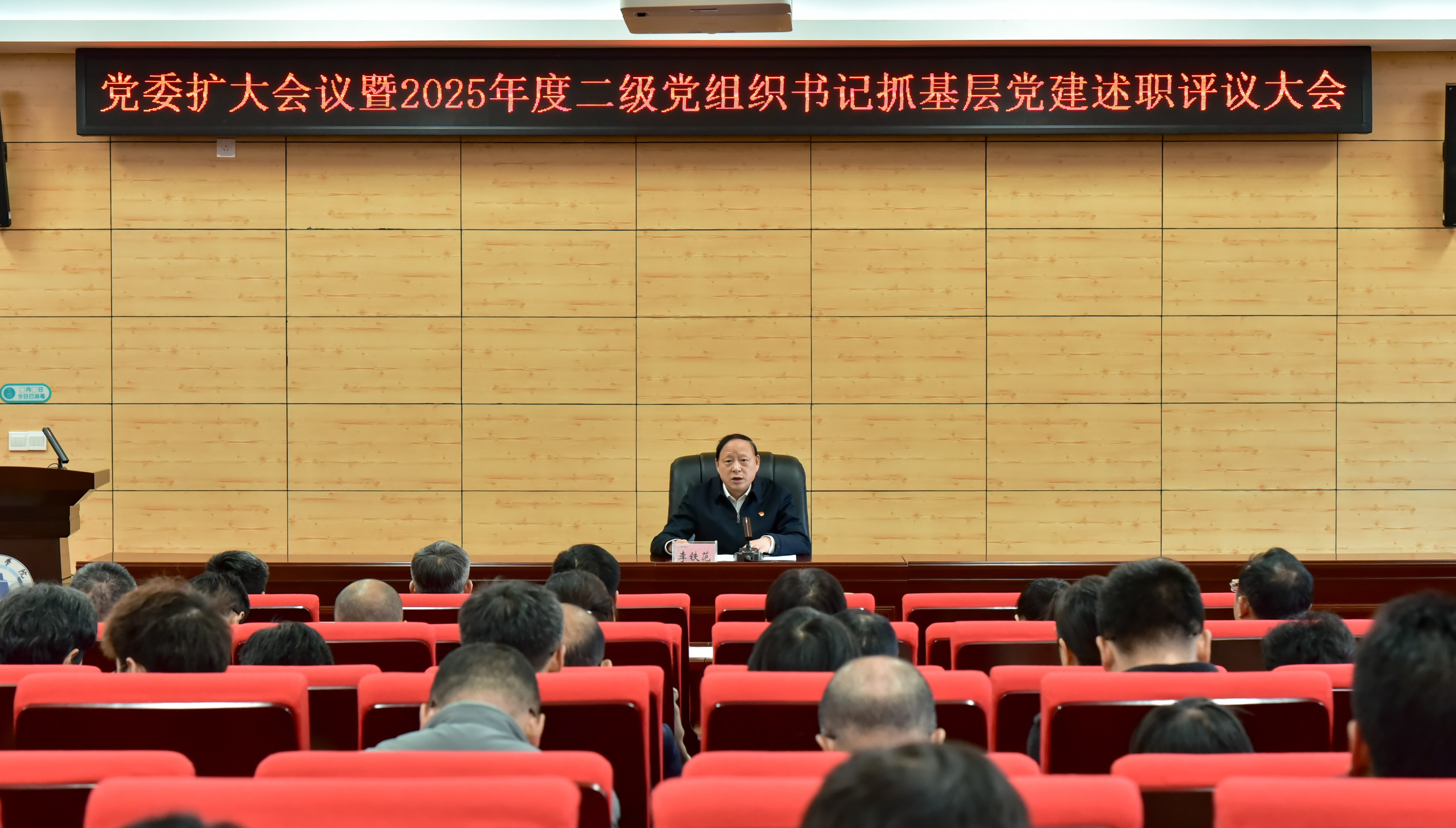 1月14日上午,学校党委扩大会议暨2025年度二级党组织书记抓基层党建工作述职评议大会在文昌南楼211会议室召开。校党委书记李铁范主持会议并讲话。校党委委员、党群职能部门负责人、二级党组织书记、纪委书记、纪检委员、省市区“两代表一委员”和教职工党员代表参加会议。
