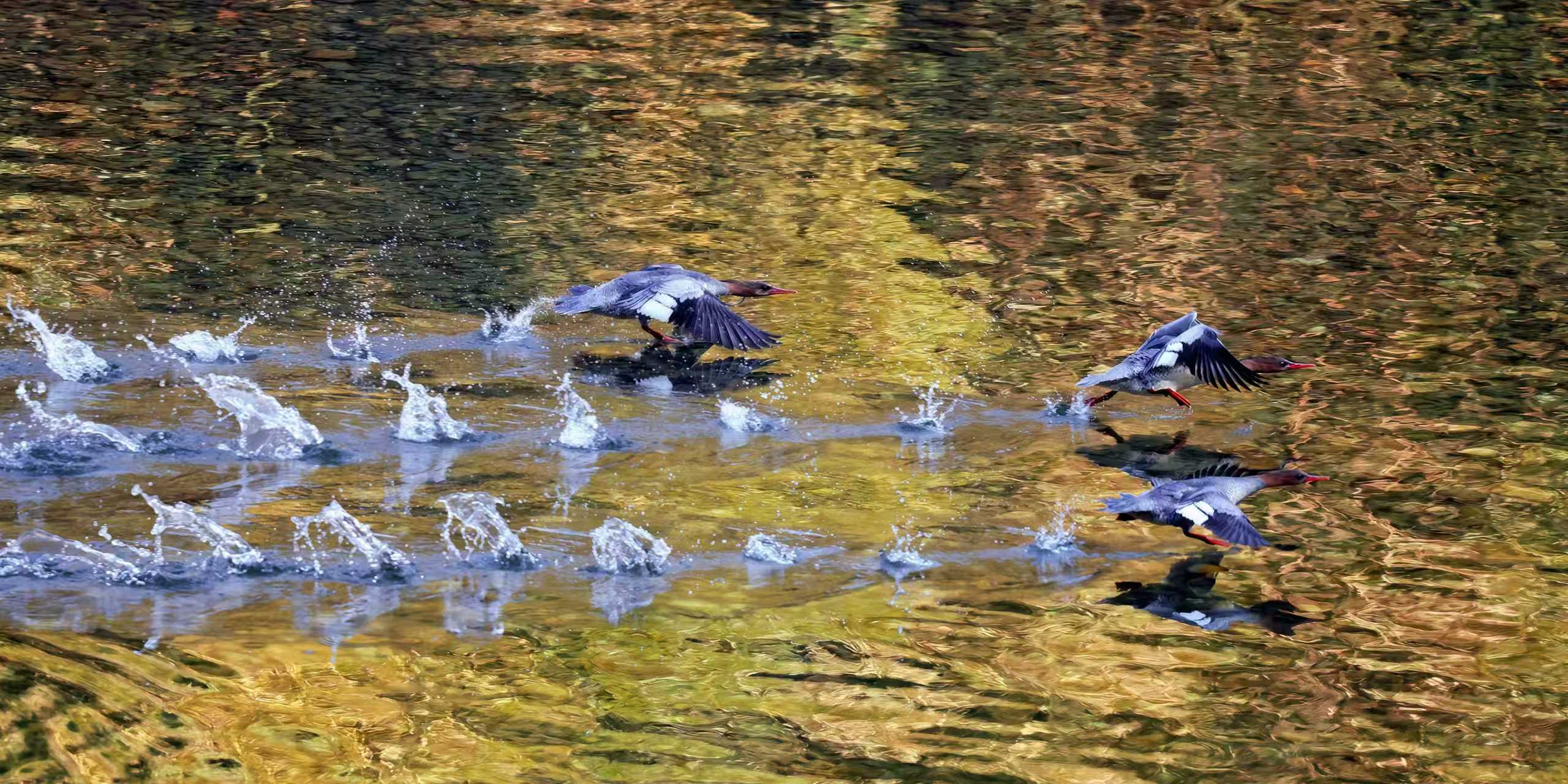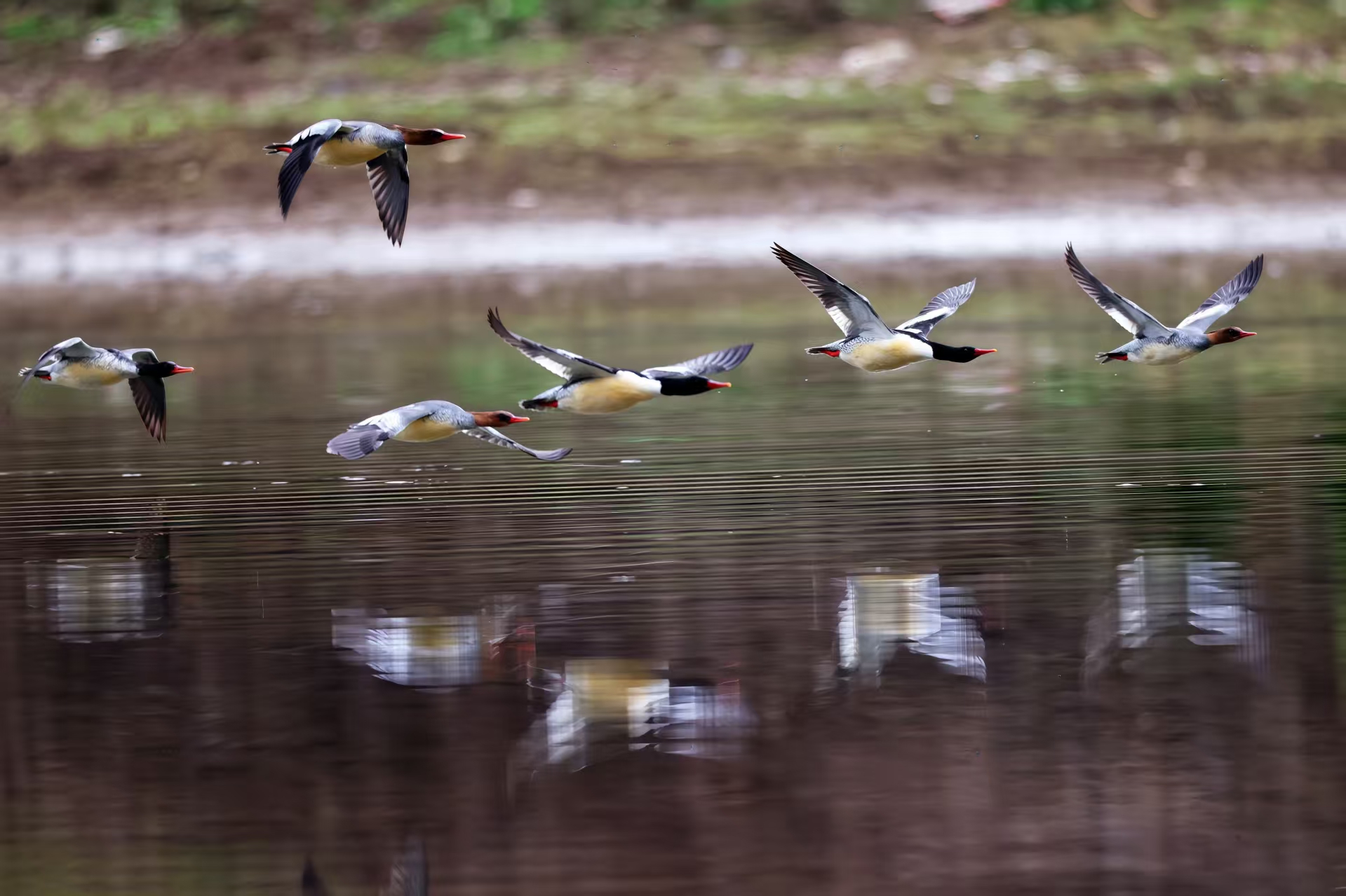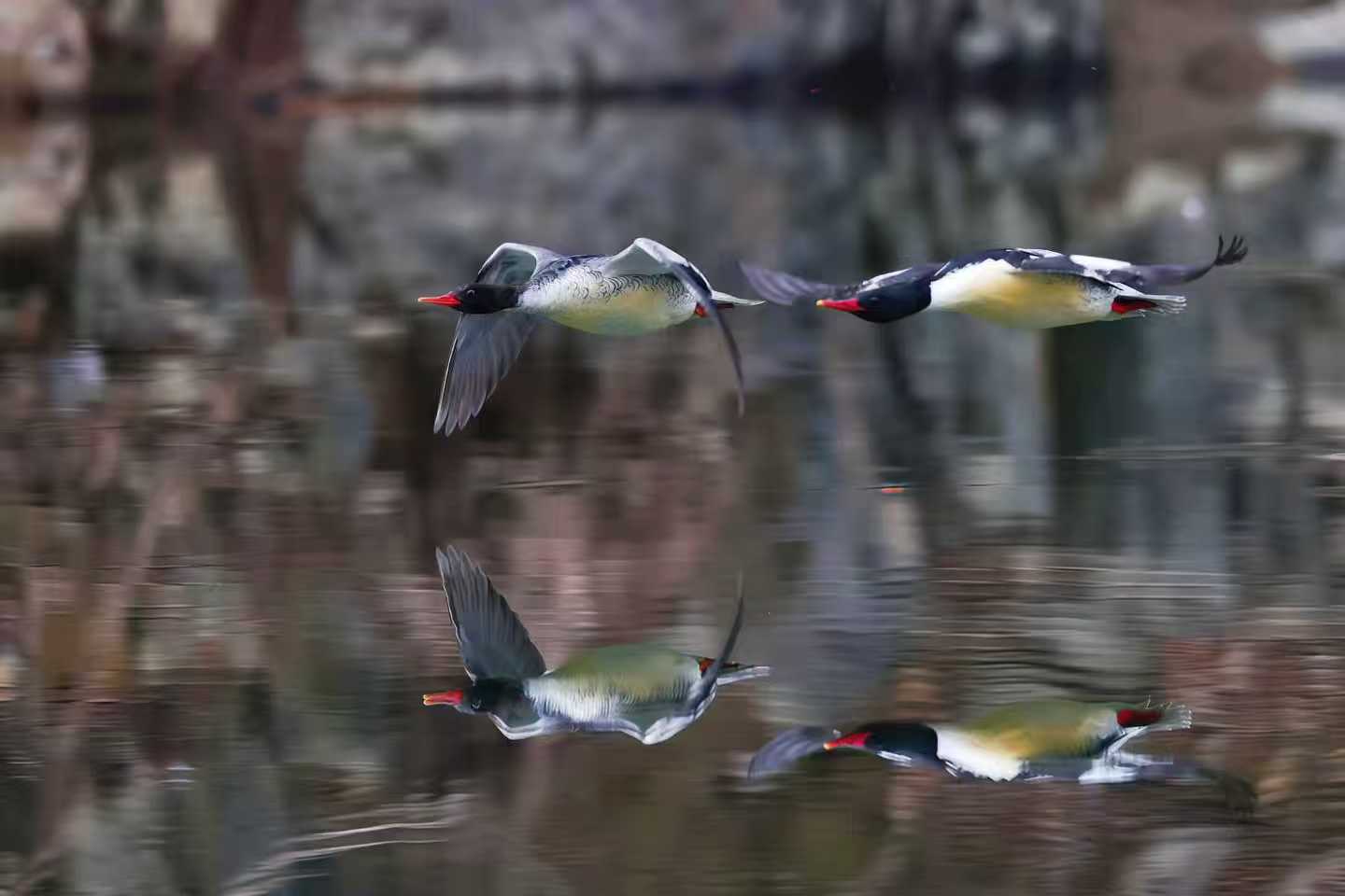 但失望过后,总有不期而遇的惊喜。调查组曾在一条河流苦寻6小时无果,连午饭都吃得忧心忡忡。就在大家以为要“空军”返程时,最后一个监测点的河面上,星星点点的白色身影闯入视野。“赶紧架起望远镜,越数越激动,整整21只!心都在颤抖。”更幸运的是,在一条从未记录过中华秋沙鸭踪迹的河流旁,队员们意外邂逅 17 只精灵,“它们太胆小,稍微靠近就会飞,我们小心翼翼停车、快速调试相机,生怕惊扰了这些贵客。”在全省同步调查中,当统计数据突破百只后,每新增一只都能引发团队的欢呼雀跃,这些瞬间,让所有艰辛都化为前行的力量。