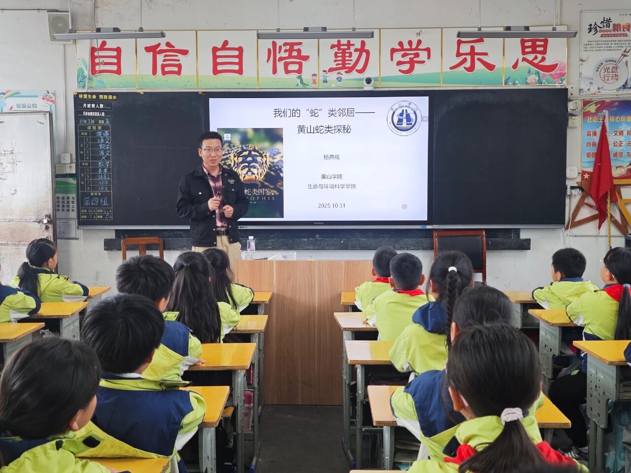 自2025年10月起,该院积极与黄山团市委、市少工委合作,选派洪新华、于超、杨典成、黄铭四位青年教师组成宣讲团,围绕大气科学、生物多样性、生态保护等主题,设计8场特色科普课程。从屯溪五中启动,陆续走进黄山市特校、屯溪一中、百鸟亭小学等多所学校,以生动易懂的形式传递科学知识,激发青少年对自然与科技的兴趣。活动期间,授课教师被多所学校聘为“科技辅导员”,初步搭建起长效科普协作平台。