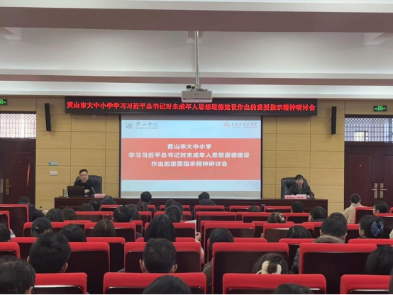 为深入学习贯彻习近平总书记关于未成年人思想道德建设的重要指示精神,扎实推进黄山市大中小学思政课一体化共同体建设,1月16日,由黄山学院马克思主义学院与黄山市教育科学研究院联合主办的“大中小学学习习近平总书记对未成年人思想道德建设重要指示精神研讨会”在黄山学院率水校区顺利举行。