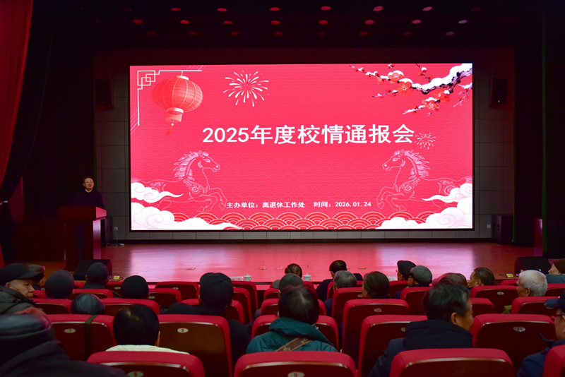 灵蛇辞旧岁,骏马踏春来。2026年1月24日下午,我校在横江校区报告厅召开2025年度离退休教职工校情通报会。校党委书记李铁范,校党委副书记刘力出席会议。60余名离退休老同志代表及离退休工作处全体工作人员参加会议。会议由刘力主持。