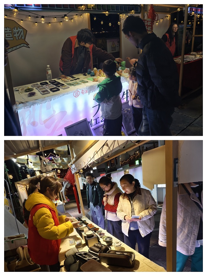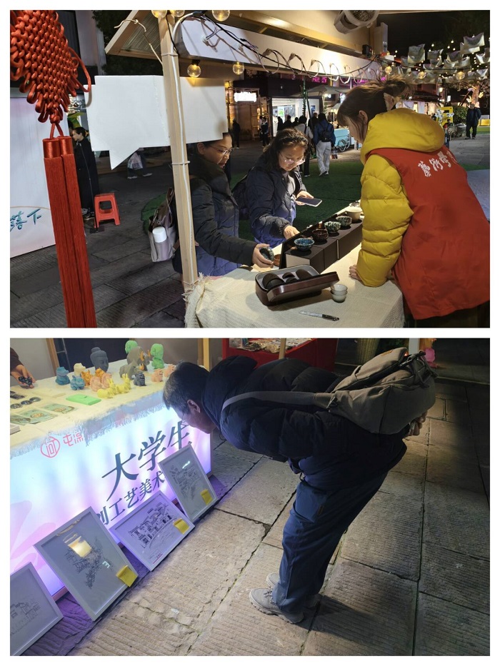 为深入贯彻国家“美育浸润”行动计划,落实文旅融合发展战略,3月13日,2026年艺术学院“小桃源”原创工艺美术文创市集在屯溪河街顺利开集。活动以“徽韵承文脉・创意焕新生”为主题,集中展呈学院在徽州文化传承、艺术人才培养、服务地方文旅发展中的阶段性成果,以艺术实践探索校地协同美育新路径,让青春创意为徽州文化注入全新活力。