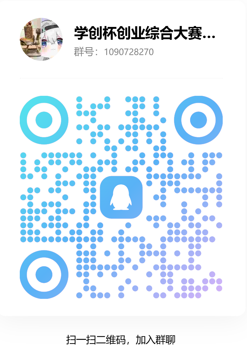 请报名参赛学生务必加入2026年“学创杯”全国大学生创业综合模拟大赛黄山学院校内选拔赛官方QQ群聊,以便及时了解有关竞赛安排信息,群号:1090728270。