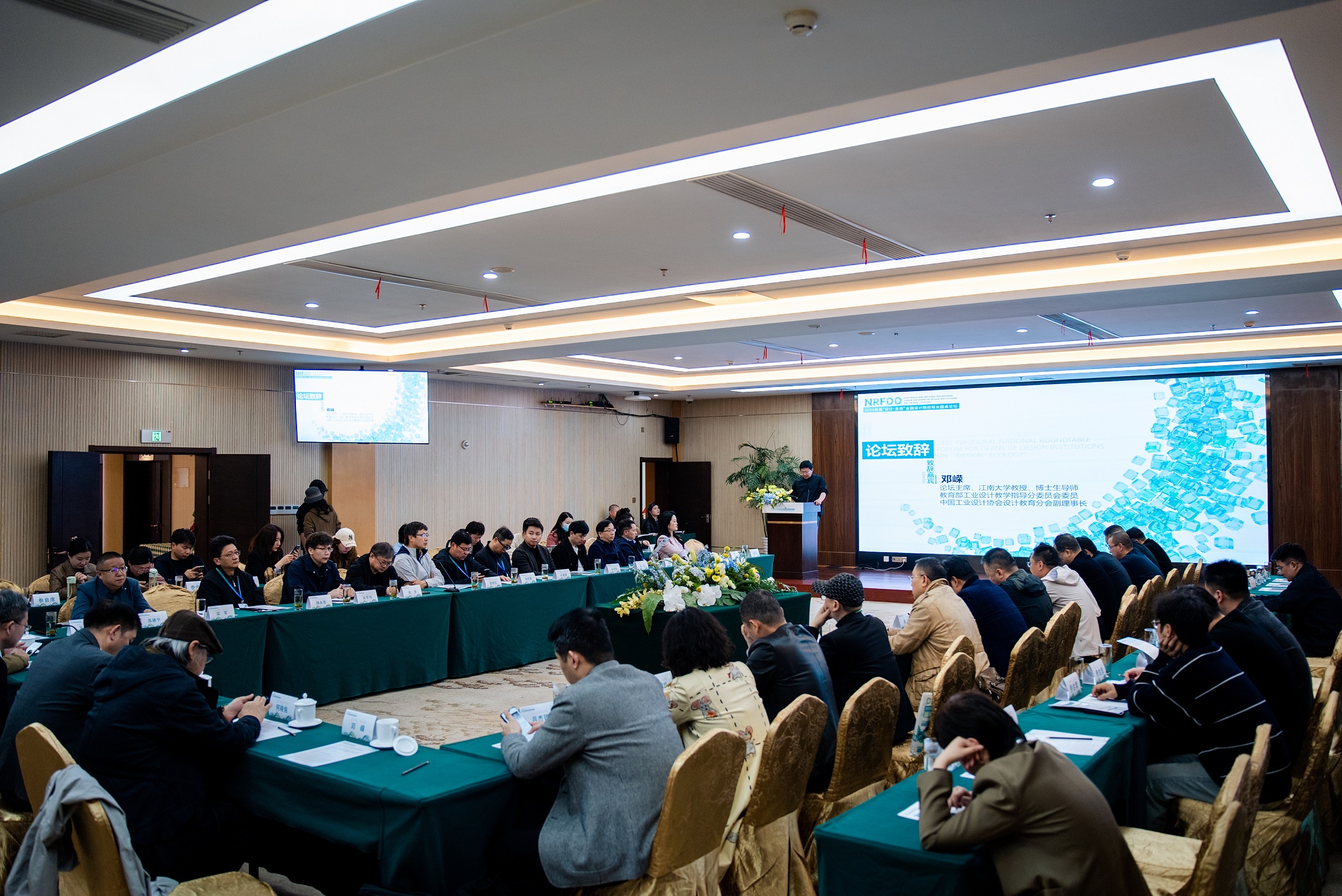 与学术会议同步进行的2026首届“设计·生态”全国设计院校院长圆桌论坛,于28日下午在黄山馨园国际大酒店举办。此次论坛以“新生态:数智进化与文化演进下的设计教育范式再生”为主题,聚焦数智进化机遇与文化演进的需求下,设计教育范式的转型与设计人才培养模式的创新。