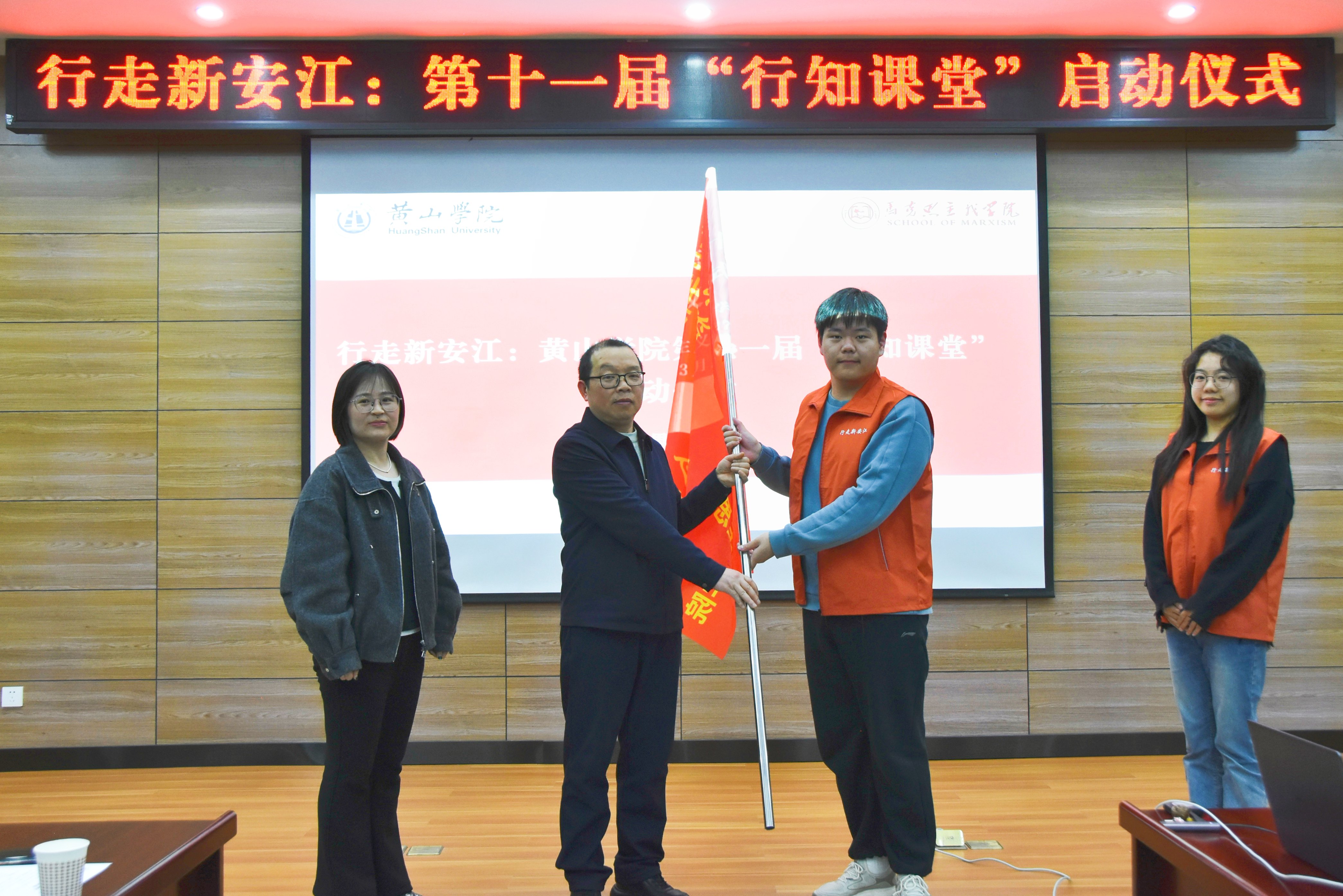 仪式上,马克思主义学院院长刘芳正回顾了“行知课堂”十余年的发展历程。他指出,作为学校落实立德树人根本任务的核心载体和助力学生成长成才的重要平台,“行知课堂” 始终坚守陶行知先生 “知行合一” 的教育理念。本届活动以 “行走新安江” 为核心主题,旨在通过扎根黄山大地的实践研学,打造具有学校特色的思政育人品牌,让学生在行走中感悟思想伟力,在实践中锤炼过硬本领。
