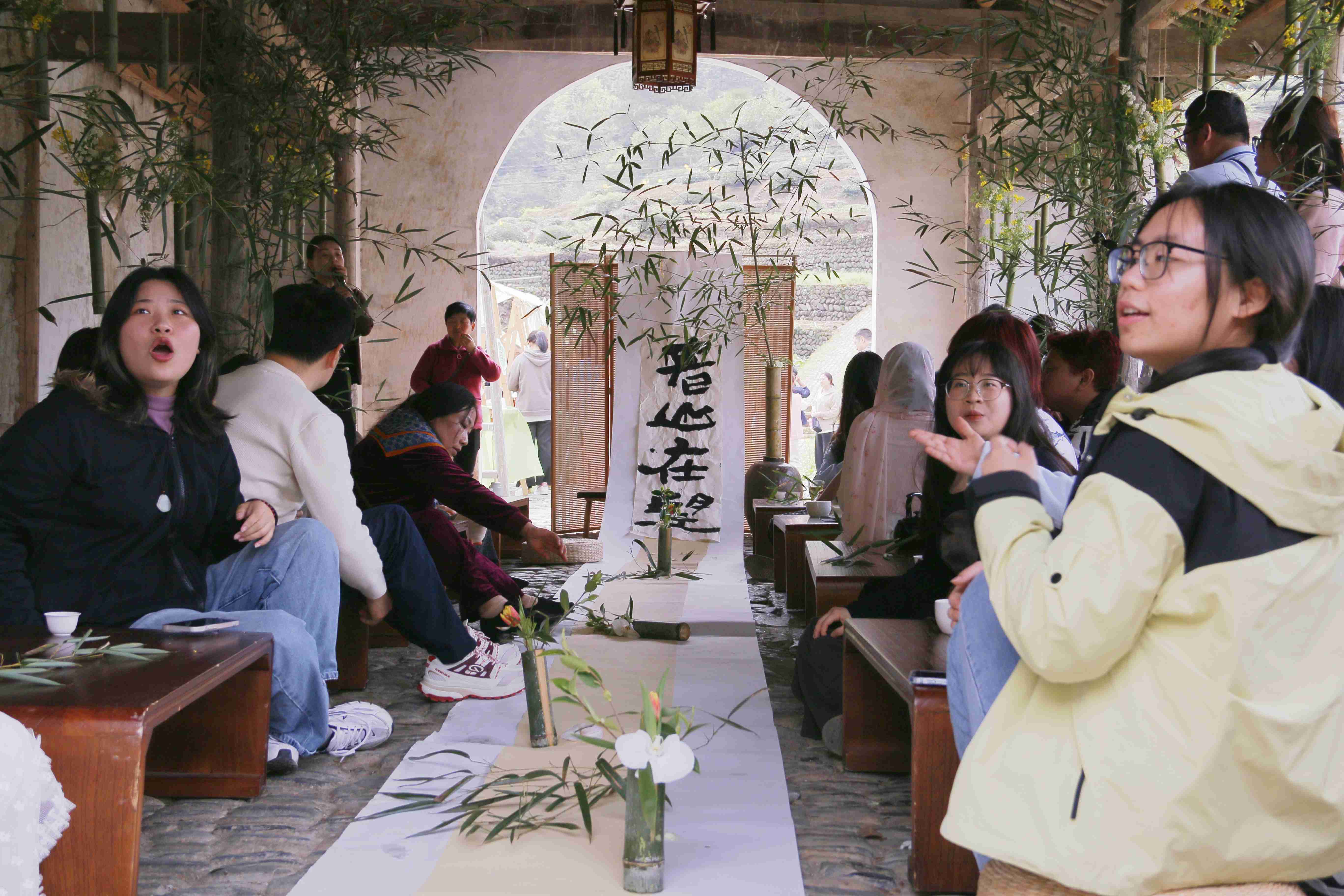 为促进专业课程与社会实践的有效融合,弘扬中华优秀传统文化的独特魅力,助力徽州传统村落文化活化利用等工作,4月4日,旅游学院和国际教育学院的70余名学生,前往休宁县蓝田镇协助地方政府开展“春染茶山・茶韵雅集”主题活动。
