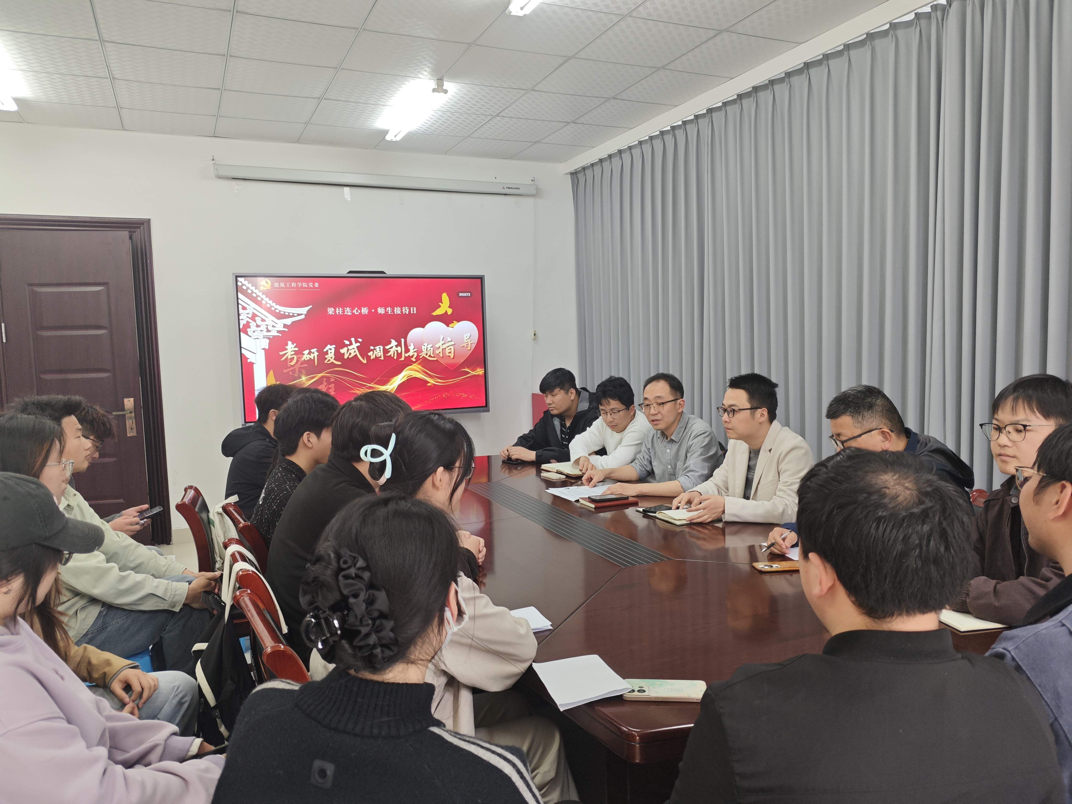 4月7日下午,建筑工程学院举办“梁柱连心桥”师生接待日——考研复试调剂专题座谈会,作为学院树立和践行正确政绩观学习教育中“开门办教育”的具体实践,活动紧扣走好新时代党的群众路线要求,聚焦学生升学急难愁盼问题,为15名有调剂需求的学子提供专项帮扶。学院相关领导、各专业教师及全体意向调剂学生参与本次活动。