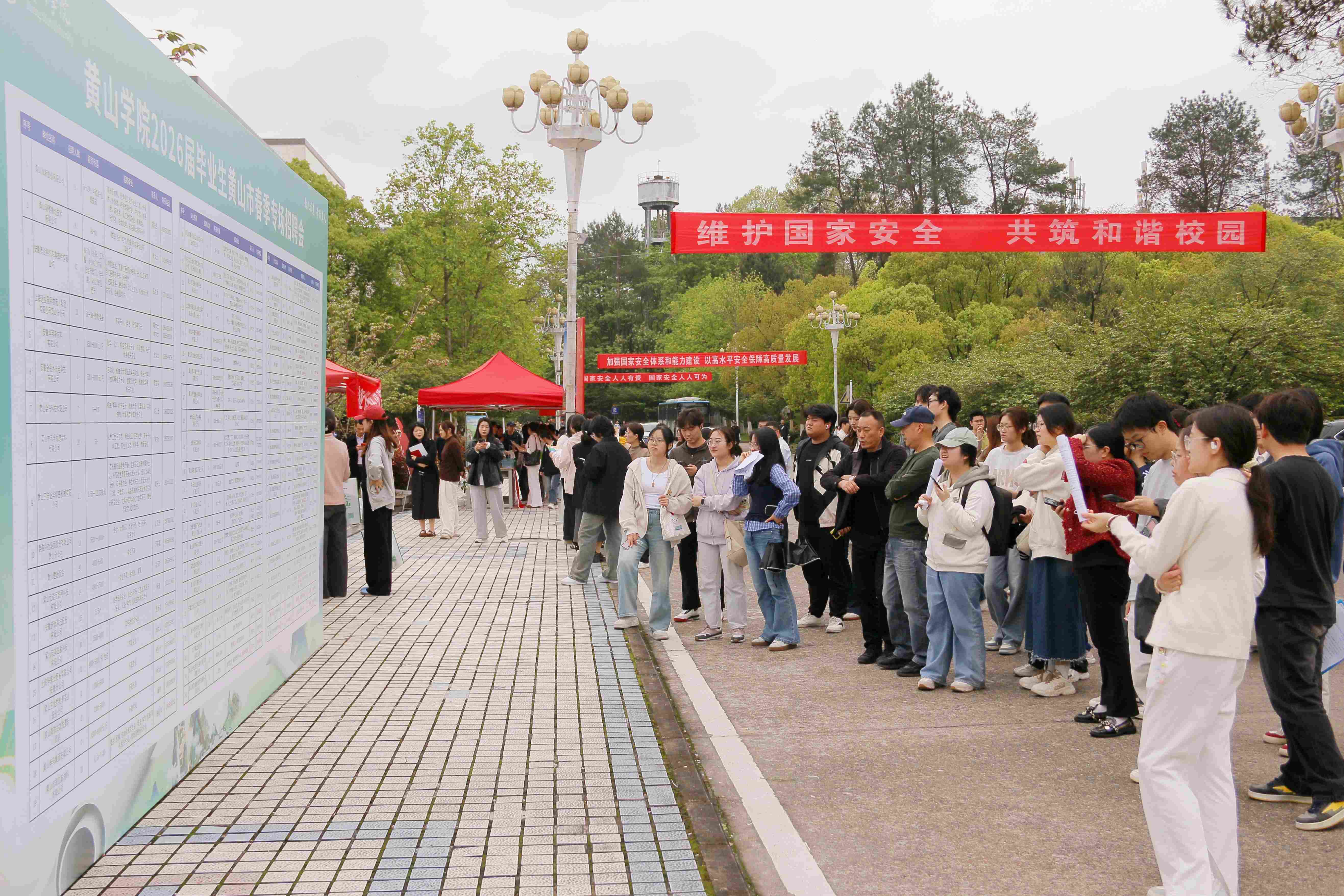 4月15日下午,我校在率水校区徽文化广场举办2026届毕业生黄山市春季专场招聘会。校党委副书记刘力,相关职能部门负责人、各学院党委副书记、毕业班辅导员及2026届毕业生参加双选会。