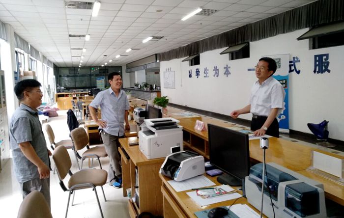 在总务处,他对工作人员暑期高温作业予以关注,询问了与施工方合作情况,强调要协调好工程进度,力保下学期开学工作不受影响,同时要进一步加强安全施工;在后勤集团,汪枫深入学生宿舍,了解假期学校维修改造工程,询问教工食堂改进情况。在与组织部、纪委办、人事处、科研处、现教中心等部门负责人交流中,嘱咐他们既要抓紧抓好各项工作的落实,确保工作不延误,又要确保高温环境下工作的安全。