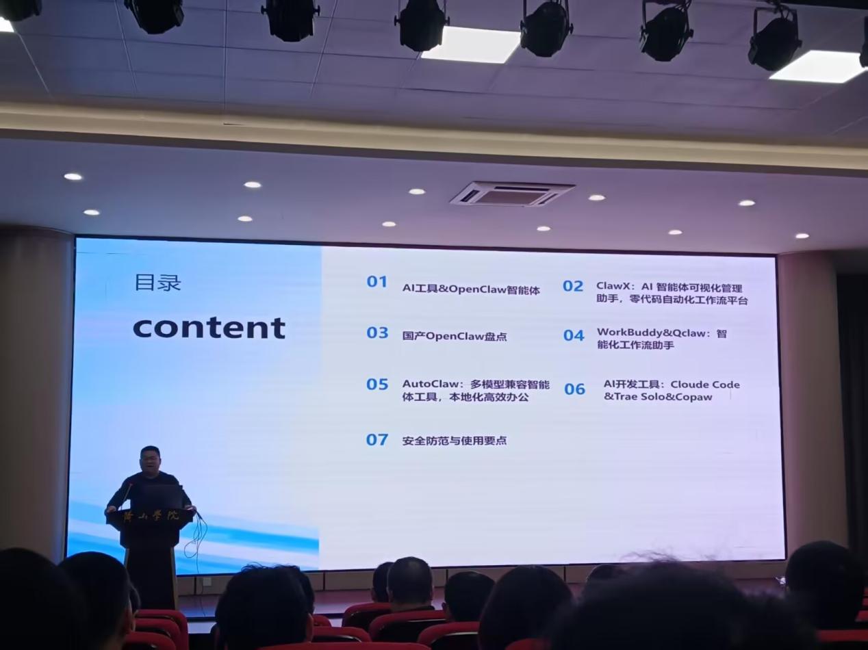 沈来信围绕OpenClaw核心配置体系、安装部署、命令大全及可视化管理平台ClawX操作方法展开讲解,系统分析13款国产OpenClaw平台特点,并结合workbuddy、Qclaw、AutoClaw等工具,详细介绍其在科研助手、教学实验、代码自动生成等场景的落地应用。
