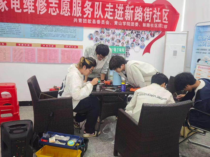 春风送暖,服务先行。为弘扬志愿服务精神,提升学生动手实践能力,4月22日,黄山学院信息工程学院家电维修队一行人奔赴歙县徽城镇新路街居民委员会,开展了一场以“义务维修进社区,便民服务零距离”为主题的志愿服务活动。队员们将课堂所学的专业知识转化为服务社区居民的实际行动,用手中的螺丝刀和电烙铁,传递着青春的温度。