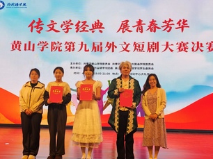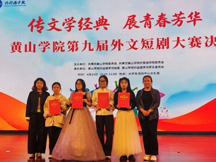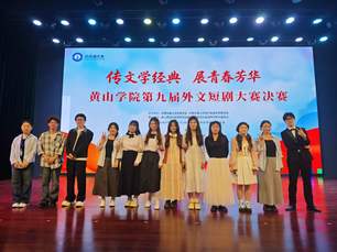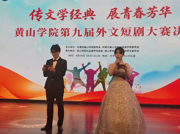 为深入推进校园廉洁文化建设,以中外经典文学为载体浸润清廉品格、涵养正气学风,同时丰富校园文化生活,提升学生外文应用与舞台演绎能力,4月25日晚,由共青团黄山学院委员会、共青团黄山学院外国语学院委员会主办,外国语学院团委、学生委员会承办的黄山学院第九届“传文学经典,展青春芳华”外文短剧大赛决赛,于大学生活动中心大礼堂隆重举行。本次大赛将文学经典演绎与廉洁价值传递深度融合,为全校师生带来了一场兼具语言魅力、艺术感染力与思想厚度的视听盛宴。