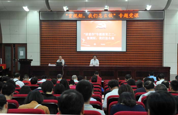 汪枫在主持报告会时指出,学校自推进“两学一做”学习教育常态化制度化、开展“讲重作”专题教育以来,各级党组织认真履行从严治党主体责任,周密部署安排、扎实有序推进,广大党员积极参加、态度认真,工作安排环环相扣、内容充实,取得了较好的工作成效。校党委举办此次“重规矩,我们怎么做”专题党课,旨在促进学校“讲政治、重规矩、作表率”专题教育向纵深推进,不断提高党员干部遵规守纪的思想自觉和行动自觉。