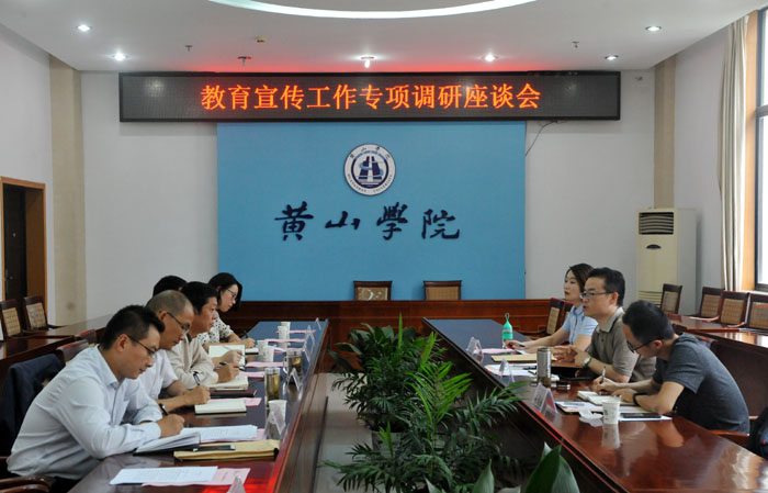 9月21日下午,省教育厅教育宣传中心主任郑振率省教育宣传工作专项调研组来我校就安徽省校园读书创作活动、教育媒体建设和教育宣传通联队伍建设等进行专项调研。校党委委员、副校长胡家俊与调研组进行了交流,对调研组来我校调研指导工作表示欢迎,对省教工委教育宣传中心长期以来对我校的关心支持表示感谢。调研座谈会在我校逸夫图书馆三楼会议室召开。我校党委宣传部、黄山市教育局、黄山市新华书店等相关单位参加了座谈会。