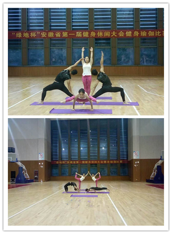 9月23日,由安徽省体育局、安徽省体育总会、黄山市人民政府主办,安徽省社会体育指导中心、黄山市体育局、安徽省健身瑜伽协会承办的安徽省第一届健身休闲大会健身瑜伽比赛先后分别在黎阳IN巷广场和我校风雨操场顺利举行。比赛共吸引了全省14个地市组队参加了包括A组(40岁以下)和B组(40-55岁)两大类和男子单人、女子单人、女子双人、混合双人和集体类等5个项目分的比赛。由体育学院聂秀娟老师担任教练,体育学院樊沁、周慧美、韩标、孟亮亮等四名同学为队员的黄山市代表队参加了女子双人A组和集体类等2个项目的比赛,分别获得二等奖和三等奖的佳绩。