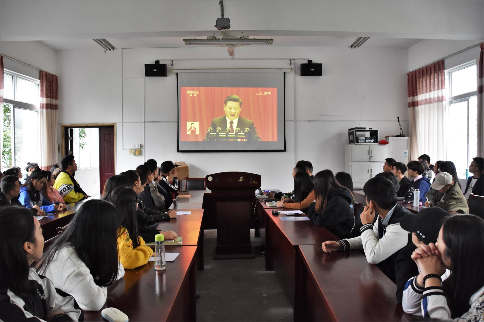 中国共产党第十九次全国代表大会18日上午在人民大会堂隆重开幕。习近平代表第十八届中央委员会向大会作了题为《决胜全面建成小康社会 夺取新时代中国特色社会主义伟大胜利》的报告。报告在我校师生中引起强烈反响。连日来,我校师生通过多种形式反复学习研读报告精神,热议党的十九大,积极开展心得体会交流,在全校上下掀起了学习宣传十九大精神的热潮。