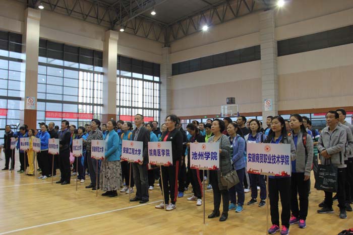 赛事在隆重热烈的开幕式中拉开帷幕,我校党委书记汪枫、副校长胡家俊、胡善风、省教科文卫体工会主席风桦和来自各代表队的领队、教练、运动员及我校部分干部职工参加了开幕式,开幕式由江南片负责人、安徽师范大学工会主席赵红主持。风桦在开幕式上讲话,胡家俊致开幕词,汪枫宣布比赛开幕。