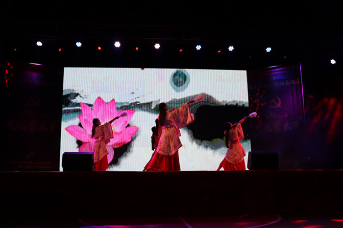 活动在《Set fire to the rain》中拉开帷幕,炫彩亮丽的灯光下,悠扬空灵的歌声瞬间吸引了现场观众的目光;《却把青梅嗅》配上古朴典雅的茶艺表演,散发出古典文化的精致韵味;滑协协会表演的《爱的华尔兹》,高难度的动作、精湛的舞技引得台下观众掌声不断;大学生艺术团表演的现代爵士舞《Mirror》,活力四射、激情澎湃,尽情彰显我校学子的热情奔放;古朴雅韵的古筝声中,书画协会会员的书法表演——《喜庆十九大》,祝贺党的十九大胜利召开;一身汉服,一把羽扇,婀娜的身姿,曼妙的舞步,民舞《无归》尽显我国汉文化的精华;“泉”漫画社社员身穿动漫角色服装,翩翩起舞,跳跃、旋转的舞蹈动作都洋溢着青春的气息,让观众感受漫画文化的魅力;“一份真心一份爱”,青鸟爱心协会带来的手语表演《跃动手指尖的爱》,通过手语表演传递一份爱心,呼吁大家关注聋哑人员。活动在献礼十九大的歌曲——《剪纸姑娘》,“剪一幅盛世吉祥”,祝愿祖国繁荣昌盛的歌声里完美落幕。