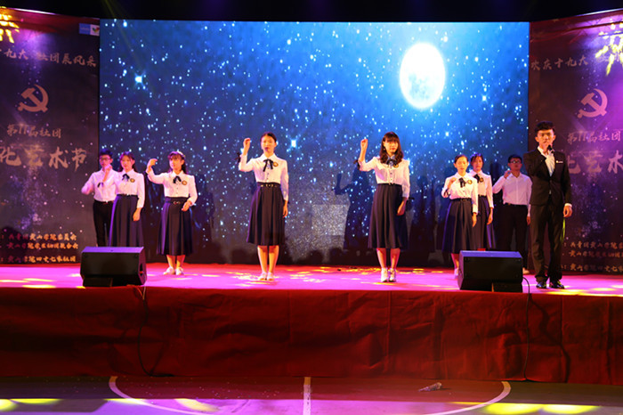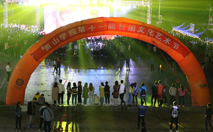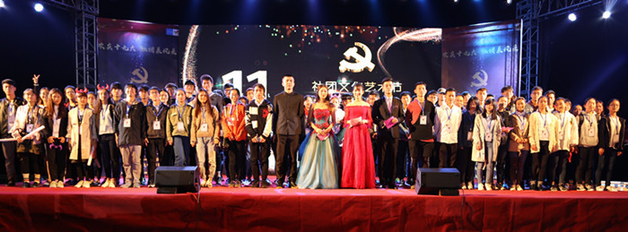 在党的十九大胜利召开之际,为进一步丰富校园文化,展示大学生社团的精神面貌和活动成果。10月20日晚,由校团委、学生社社团联合会主办,全校四十七家社团协办的第十一届社团文化艺术节开幕式在南区一食堂前隆重举行。团委和各学院教师、团干部参加。全校2000多人观看了此次活动。