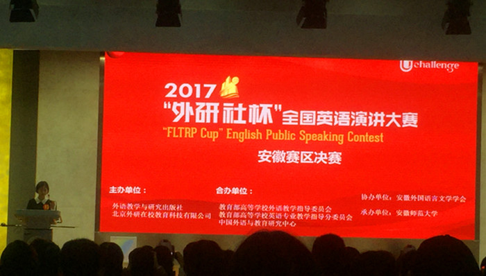 10月27到29日,2017年“外研社杯”全国大学生英语挑战赛比赛(安徽赛区)在安徽师范大学举行。共有省内43所高校的264名选手参与英语演讲、英语写作、英语阅读三个赛事项目的比赛。其中,我校选派的参赛选手经过激烈地角逐,取得优异成绩。演讲组王园丽同学(外国语学院)荣获二等奖,张素雅同学(旅游学院)荣获三等奖;阅读组卢倩同学(外国语学院)荣获二等奖;写作组朱劲宇同学(外国语学院)荣获一等奖、王如梁同学(旅游学院)荣获二等奖。