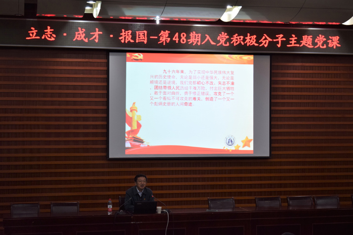 11月8日晚,校党委书记汪枫在逸夫图书馆二楼报告厅为生环学院和经管学院第48期入党积极分子培训班上专题党课,宣讲党的十九大精神。生环学院和经管学院党政领导、党支部书记及200余名入党积极分子聆听了党课。
