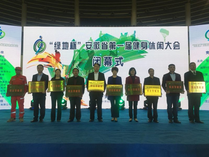 11月12日晚,安徽省第一届健身休闲大会闭幕式在黄山市体育馆隆重举行,省体育局局长高维岭,省体育局副局长陈海军,市人大常委会副主任叶长荫,六安市副市长王安义,市政协副主席张俊杰等出席,副市长程红主持闭幕式。会上表彰了相关先进单位,我校被大会组委会授予“突出贡献奖”。