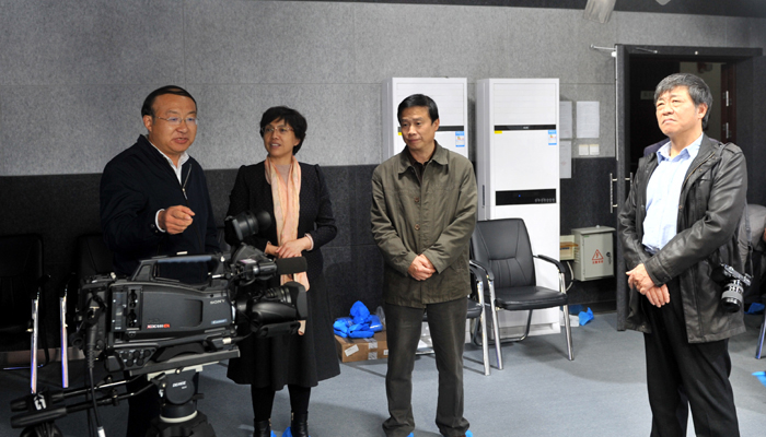 随后程雁雷一行还参观了文化与传播学院多功能演播厅、播音主持微格教室等,对我校的教学设备投入力度和设备建设的高度表示赞赏,希望加强两校之间学科建设的交流合作,并饶有兴致地尝试了录播的音像效果。