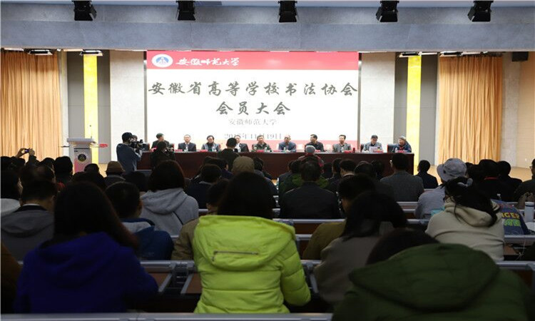11月19日上午,安徽省高等学校书法协会成立大会在安徽师范大学花津校区举行。安徽省文联原党组书记杨屹、省文联主席吴雪、省民政厅社会组织管理局局长阚家安、省书法家协会副主席桂雍、安徽师范大学党委副书记李琳琦等参加了成立大会。我校艺术学院党总支书记、院长张赛,文学院教授潘定武,文学院副教授洪永稳,外国语学院副教授杨旗出席会议。会上选举产生了协会第一届领导机构,张赛当选为副主席,洪永稳当选为理事。