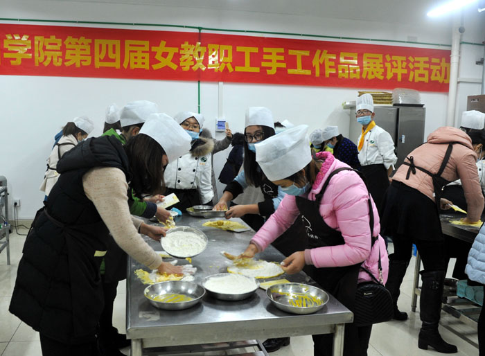 本次手工作品展的主题为手工奶酥,全校各分工会共选派32名女教职工参加了活动。穿上围裙的女教职工们,变身为面点大师,在旅游学院专业教师指导和烹饪专业学生的示范下,做成各种各样的造型奶酥,并充分发挥想象力和创造力,将满意的奶酥精心摆盘进行参展,展示的作品创意独特,充分体现了我校女教职工多才多艺、热爱艺术、热爱生活的精神风貌。制作结束后,大家将亲手制作的蛋糕与同事们和家人一起品尝,并分享制作心得。大家表示,能亲手为同事和家人们制作一份奶酥,既甜蜜温馨又心情愉快,希望学校经常开展此类活动,以增强相互之间的感情。