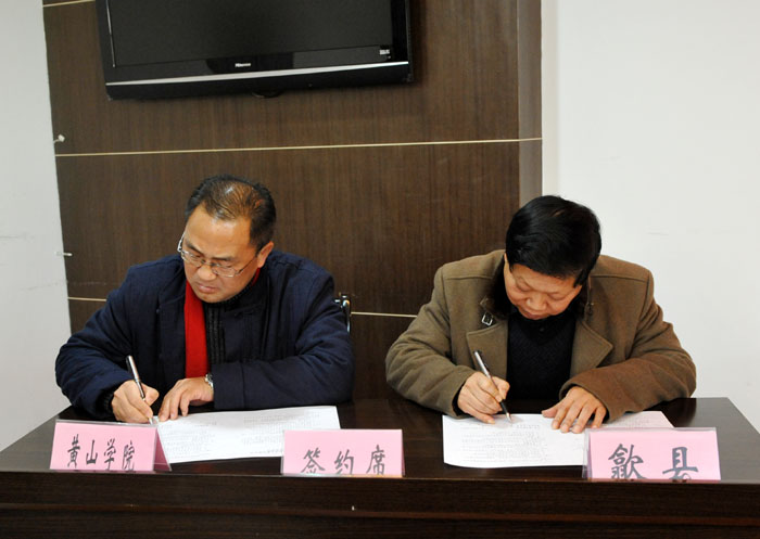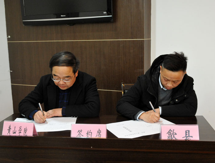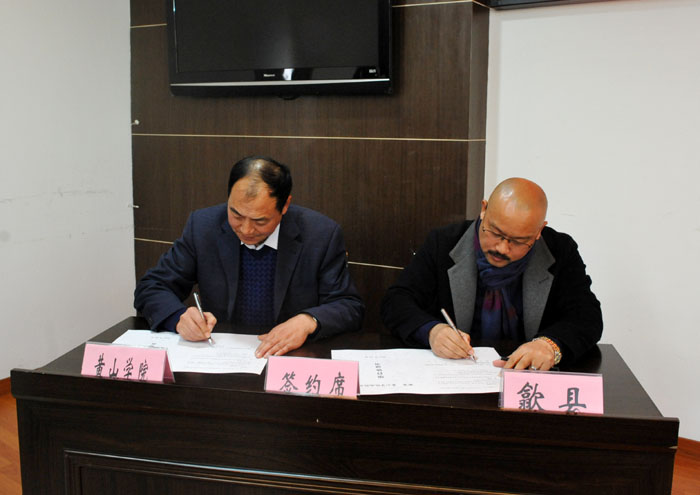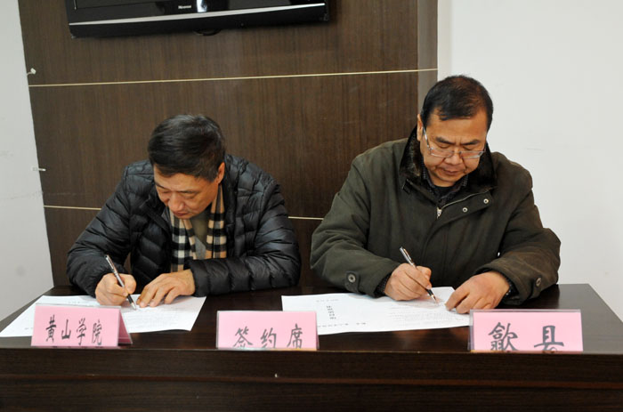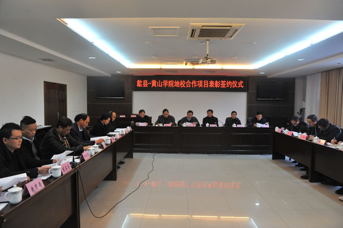 会上表彰了2016年度(第三批)校地合作优秀项目,“‘旅游+徽文化’创客基地”“培育、改良及研发珠兰花茶系列优质农产品”等7个项目获奖。双方根据歙县工业经济和社会事业发展的需求,签署了2017年度(第四批)校地合作项目13项,其中新增合作项目6个,续签项目3个,另有4个项目在原定协议的基础上继续合作。化学化工学院、生命与环境科学学院、旅游学院、文化与传播学院、艺术学院、文学院负责人分别与合作单位签订了项目合约。
