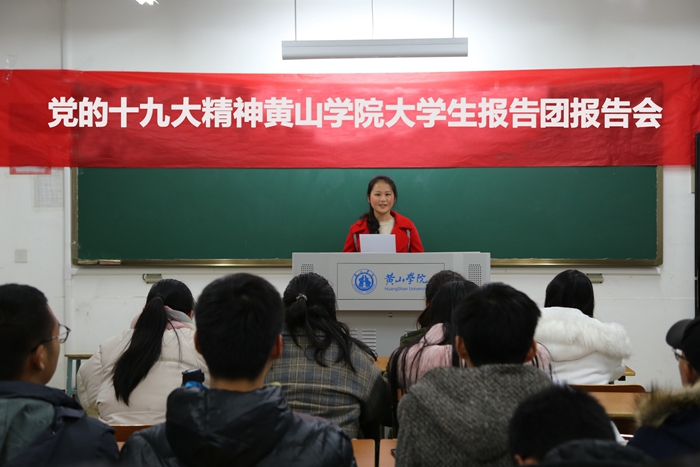 据悉,党的十九大胜利闭幕后,我校学子迅速在校内外掀起了学习宣传贯彻十九大精神的热潮。校团委在集中进行数次十九大报告的学习交流会后,通过研读报告、拟定宣讲学习主题等形式,精心组织宣讲选拔,挑选出15名宣讲员组建十九大精神大学生报告团。报告团和黄山学院习近平新时代中国特色社会主义思想青年研习社共同组织起来,原原本本学习报告,争取学懂、弄通、做实十九大精神,同时发挥专业特长,结合不同学科特点,创新宣讲方式,以大量生动鲜活的实例和语言,在丰富多彩的宣讲活动中将党的十九大精神传播出去。